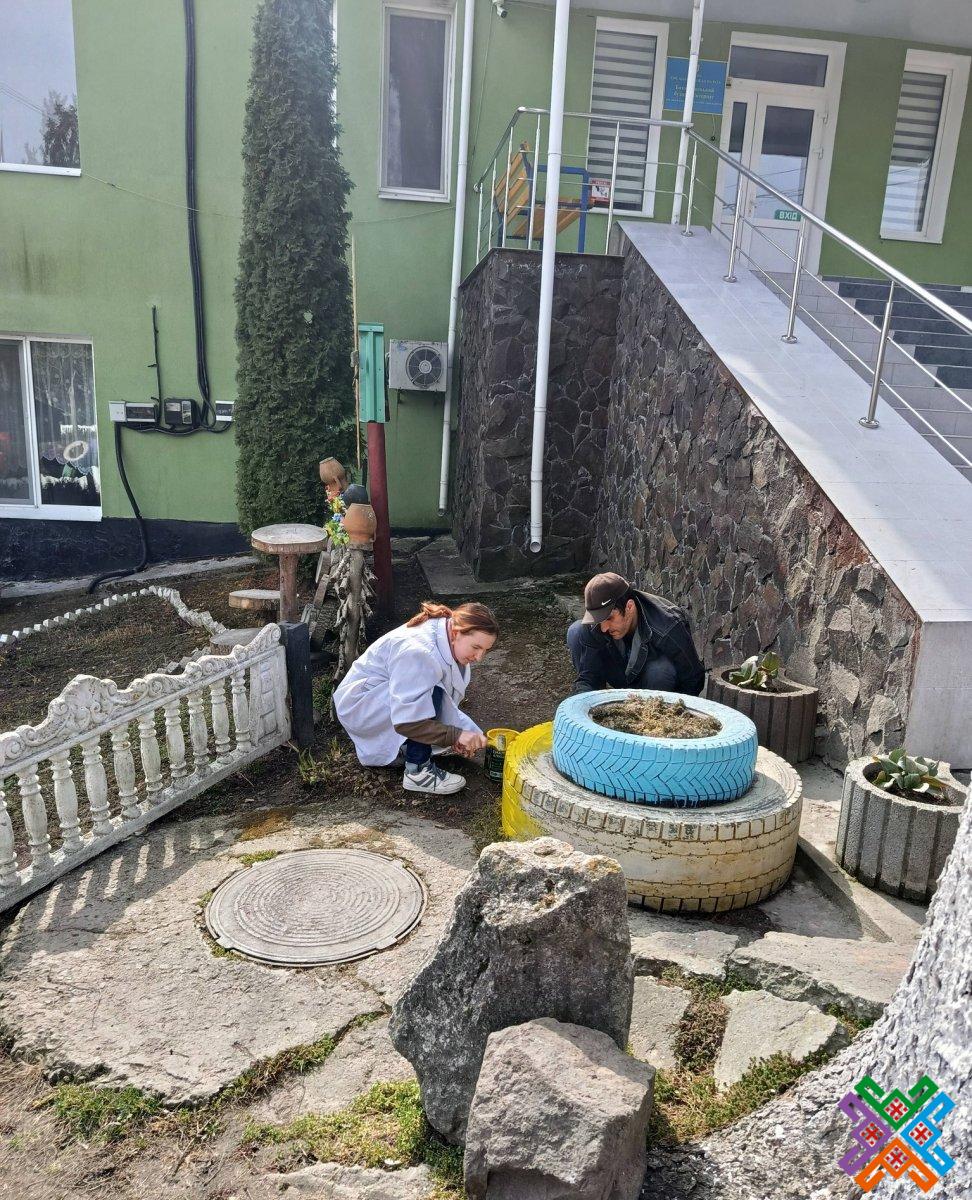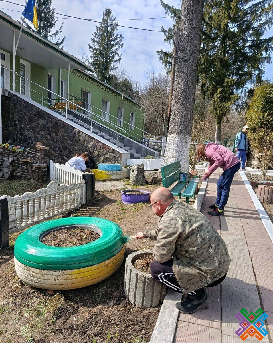 Працівники закладу впорядкували територію – позагортали сухолист, пофарбували огорожі, лавки та садові фігури, привели до ладу квітники.