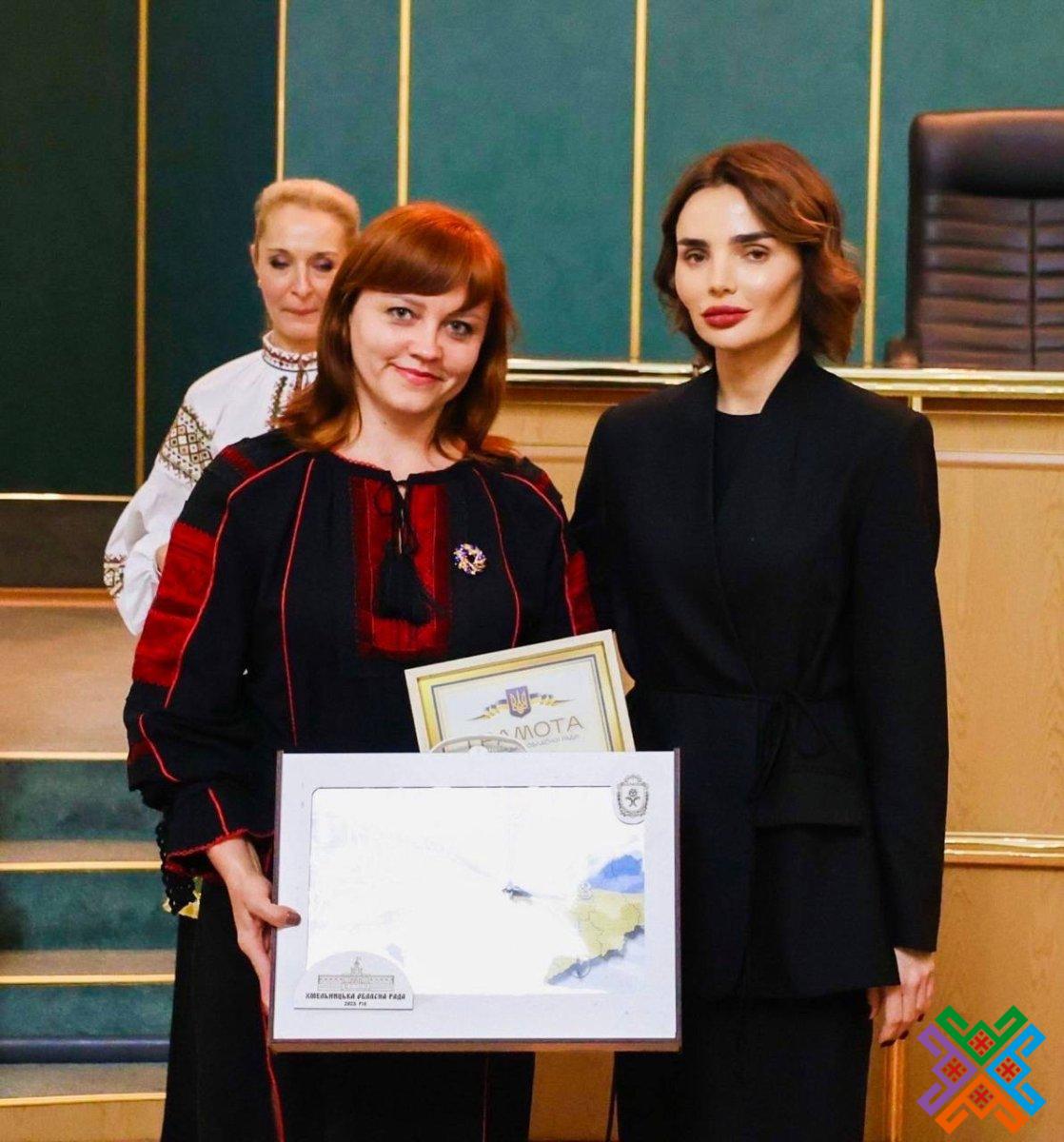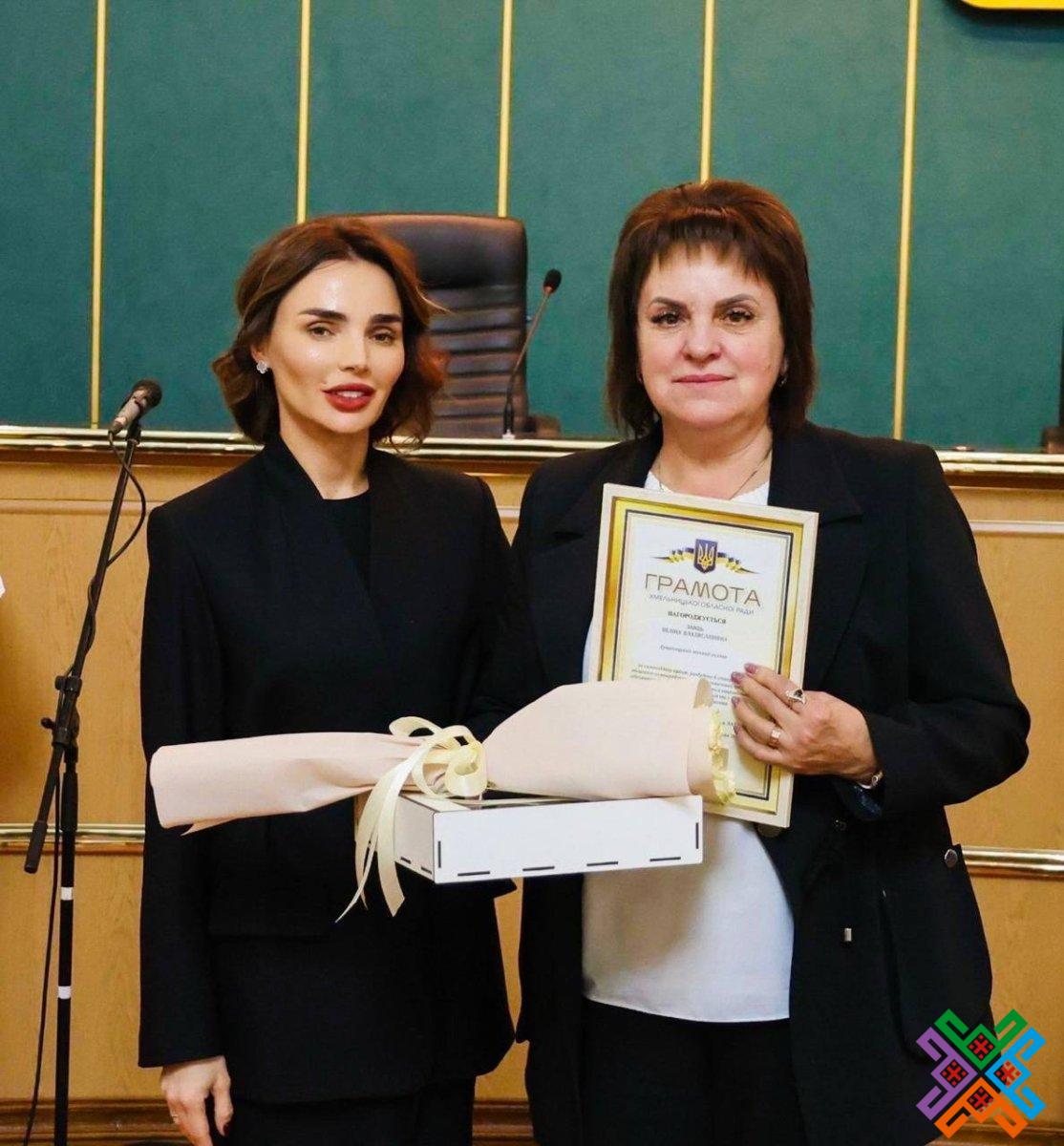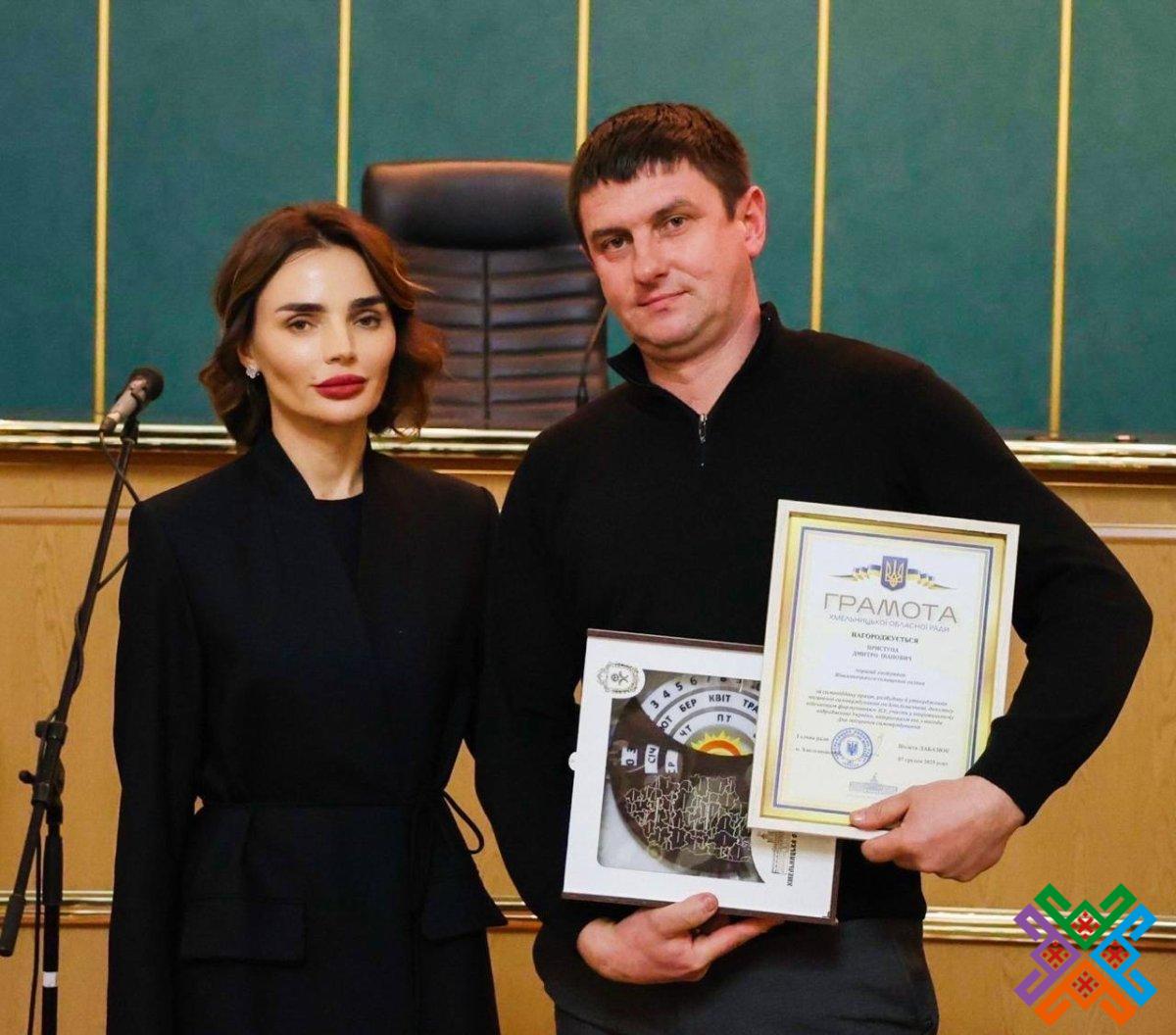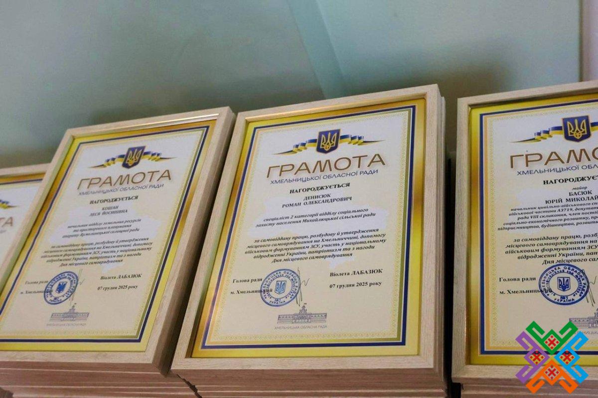 За самовіддану працю, розбудову й утвердження місцевого самоврядування на Хмельниччині, допомогу військовим формуванням ЗСУ, участь у національному відродженні України та патріотизм Віолета Лабазюк відзначила усіх причетних до цього свята Грамотами обласної ради та цінними подарунками.