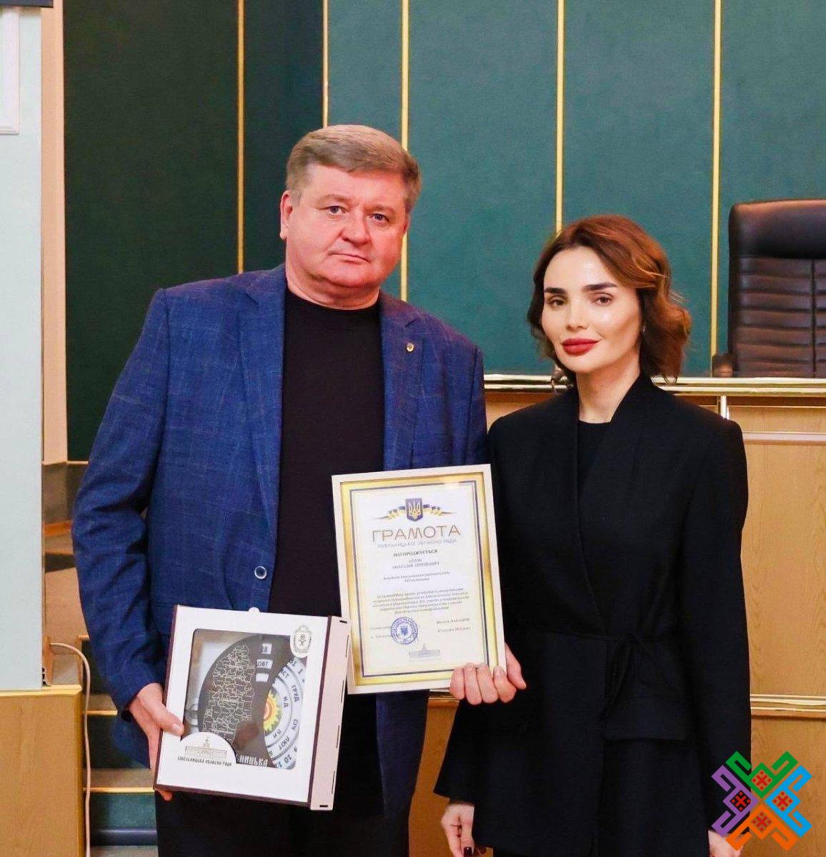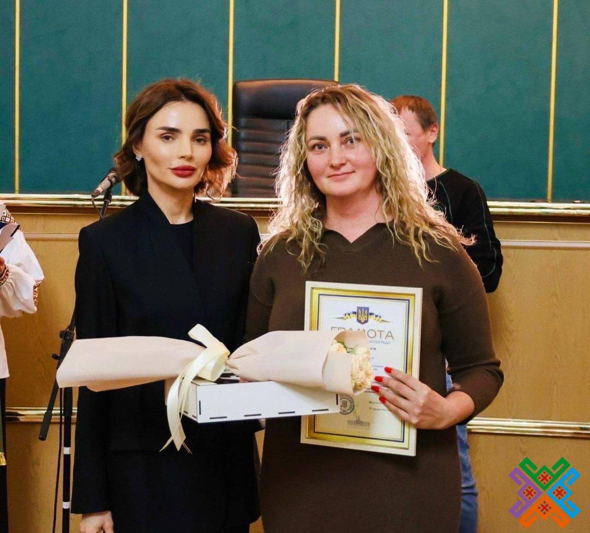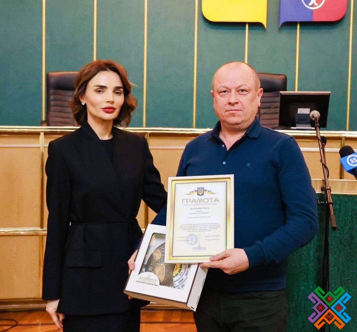 За самовіддану працю, розбудову й утвердження місцевого самоврядування на Хмельниччині, допомогу військовим формуванням ЗСУ, участь у національному відродженні України та патріотизм Віолета Лабазюк відзначила усіх причетних до цього свята Грамотами обласної ради та цінними подарунками.