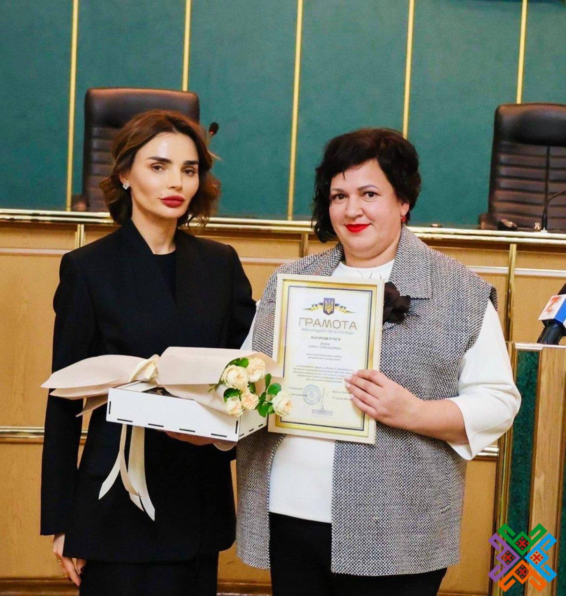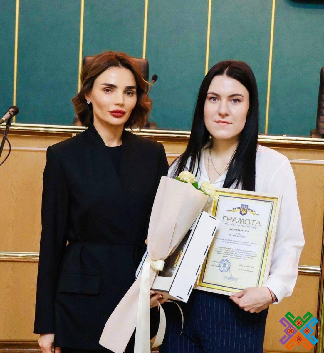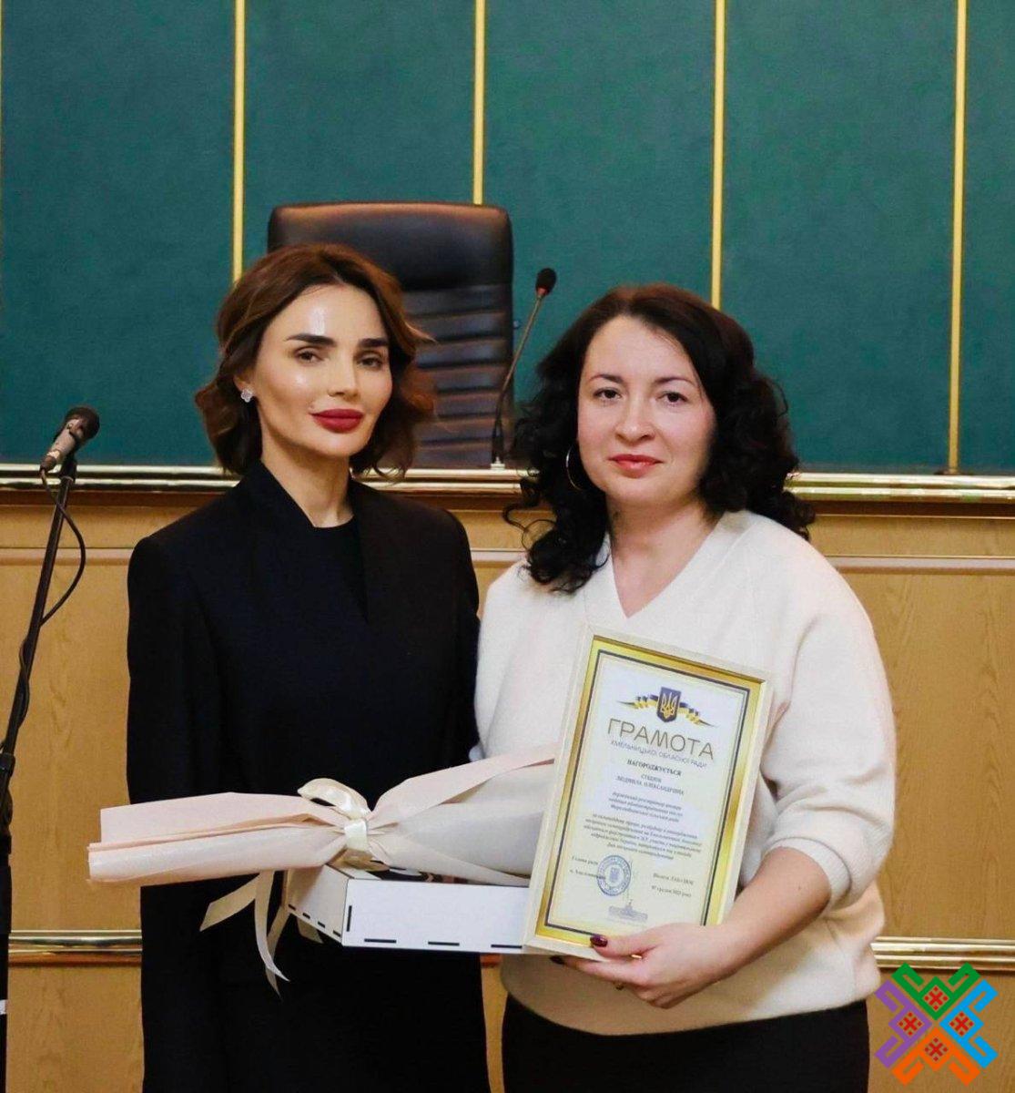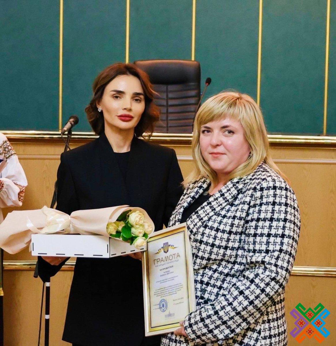 За самовіддану працю, розбудову й утвердження місцевого самоврядування на Хмельниччині, допомогу військовим формуванням ЗСУ, участь у національному відродженні України та патріотизм Віолета Лабазюк відзначила усіх причетних до цього свята Грамотами обласної ради та цінними подарунками.