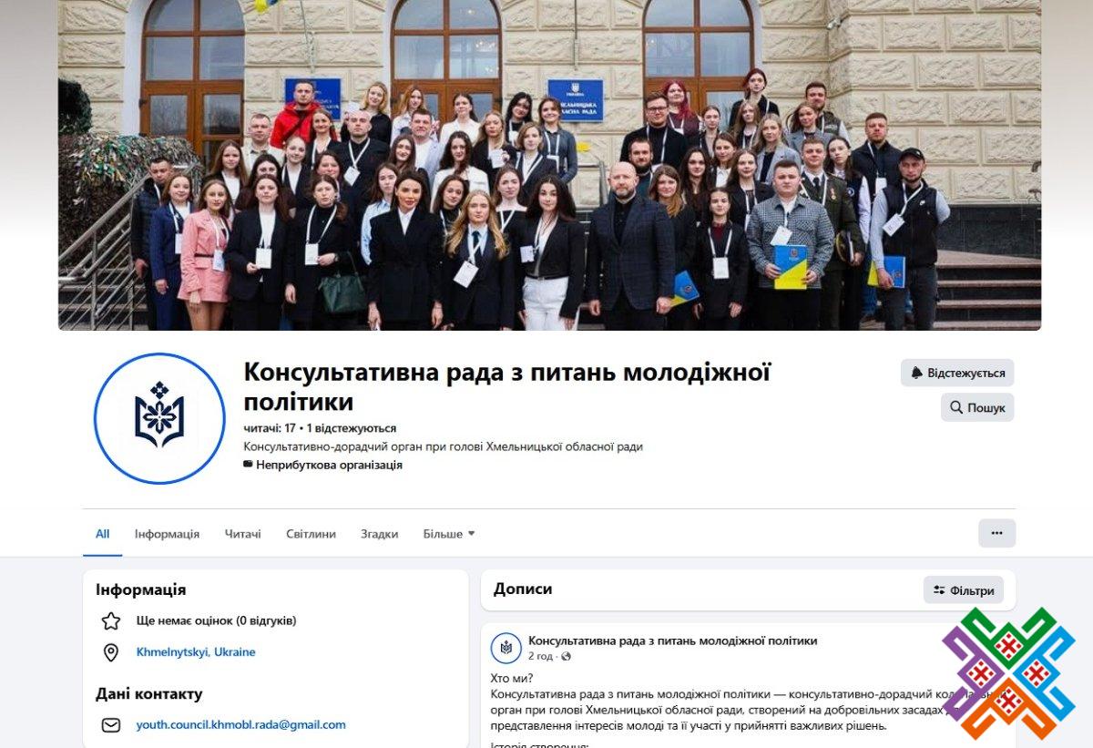 Консультативна рада з питань молодіжної політики при голові обласної ради, яка розпочала роботу у березні 2026 року, створила офіційні сторінки у соціальних мережах – Фейсбук та Інстаграм.