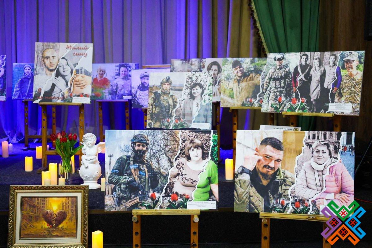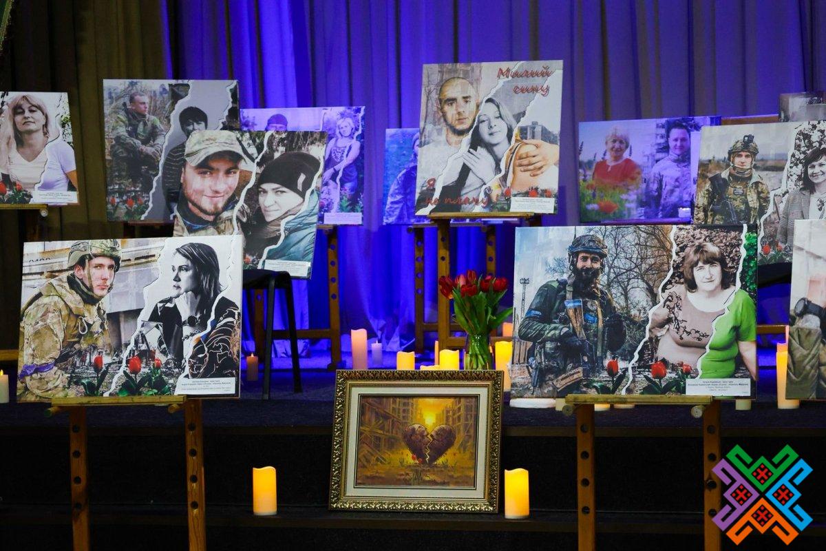 На сцені були розміщені колажі з портретами хлопців-азовців з їхніми матерями, біля яких мерехтіли свічки пам’яті як символ скорботи за загиблими, незламність духу та безперервність  поколінь.