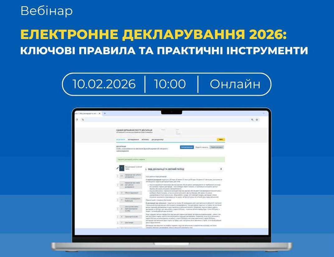«Електронне декларування 2026: ключові правила та практичні інструменти» – триває реєстрація на вебінар