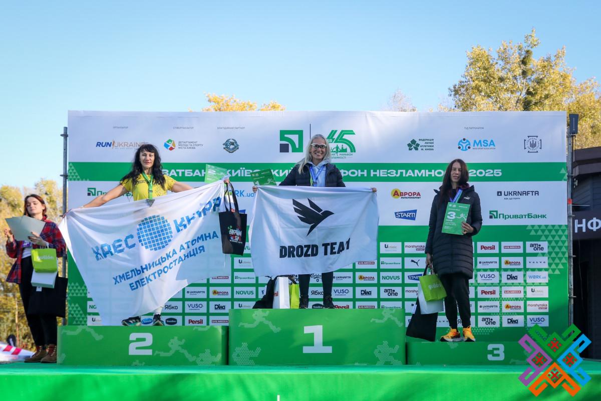 Майя Абрамович (ГТЦ) продемонструвала відмінну спортивну форму, посівши друге місце у віковій категорії 40–49 років та 7-ме у загальному заліку серед жінок на дистанції 42,2 км. Спортсменка була нагороджена цінними подарунками від організаторів заходу.