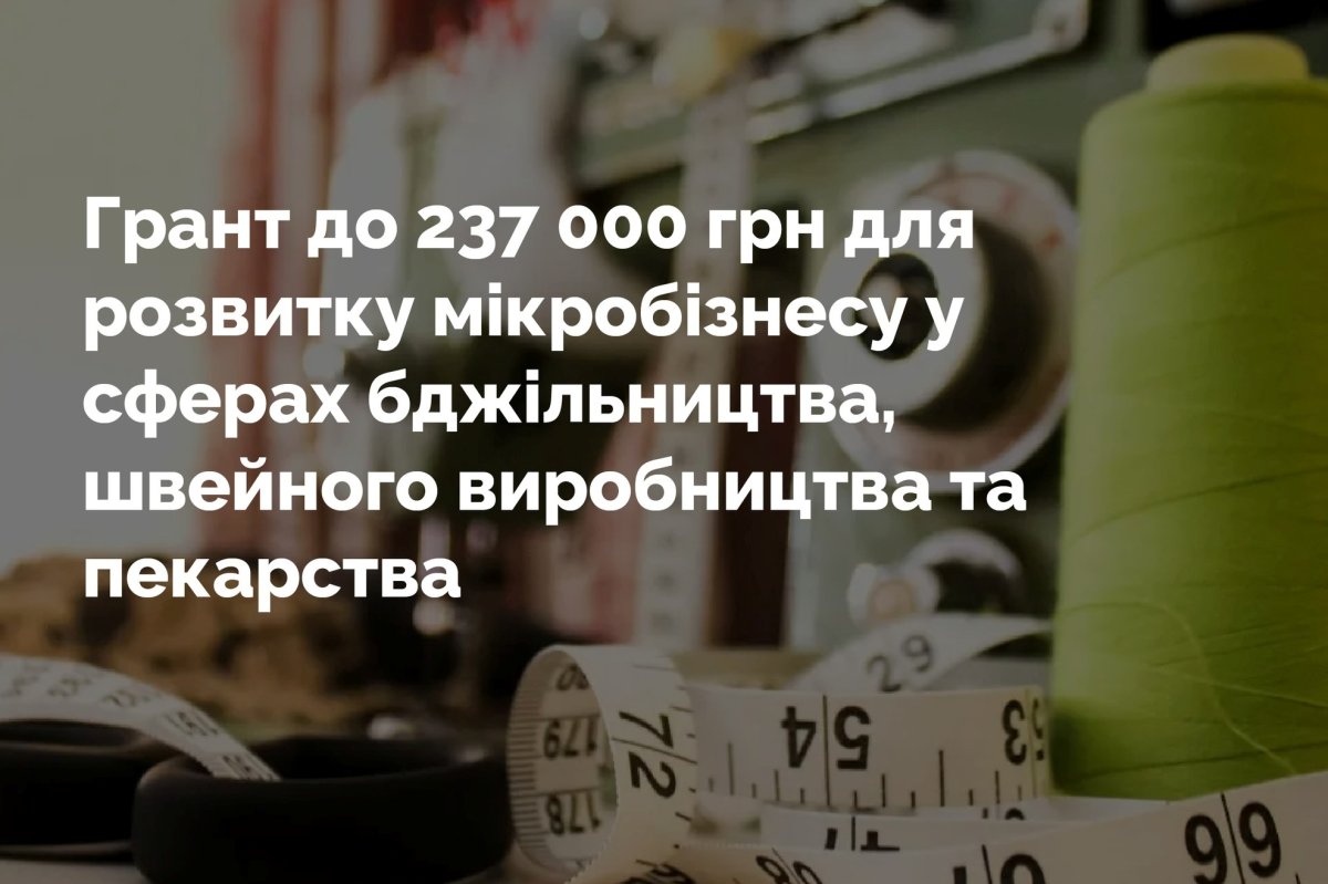 • грант до 237 000 грн на закупівлю обладнання та сировини;