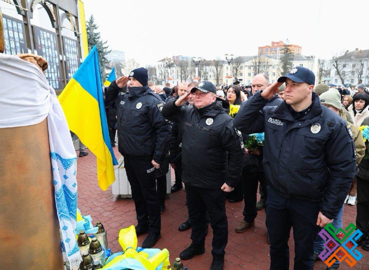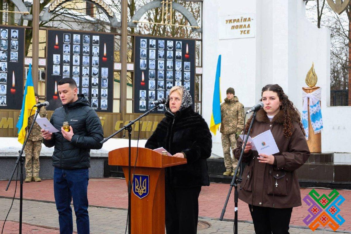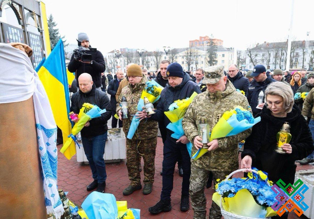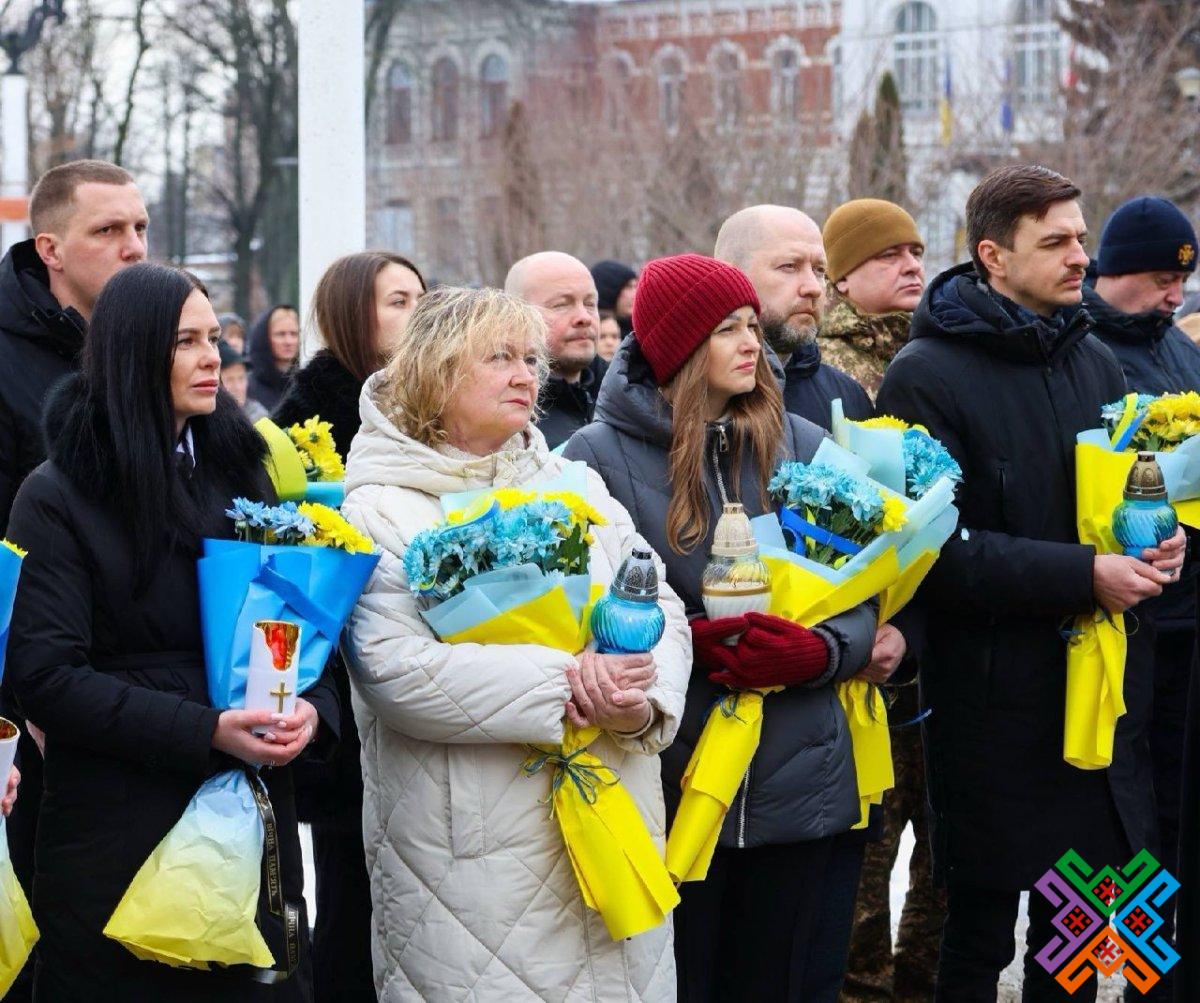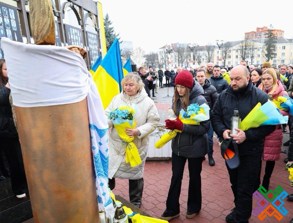 На завершення заходу прозвучав Духовний гімн України “Боже Великий, Єдиний”, а до Стели пам’яті Героїв Небесної Сотні та Героїв неоголошеної російсько-української війни присутні поклали живі квіти та лампадки.