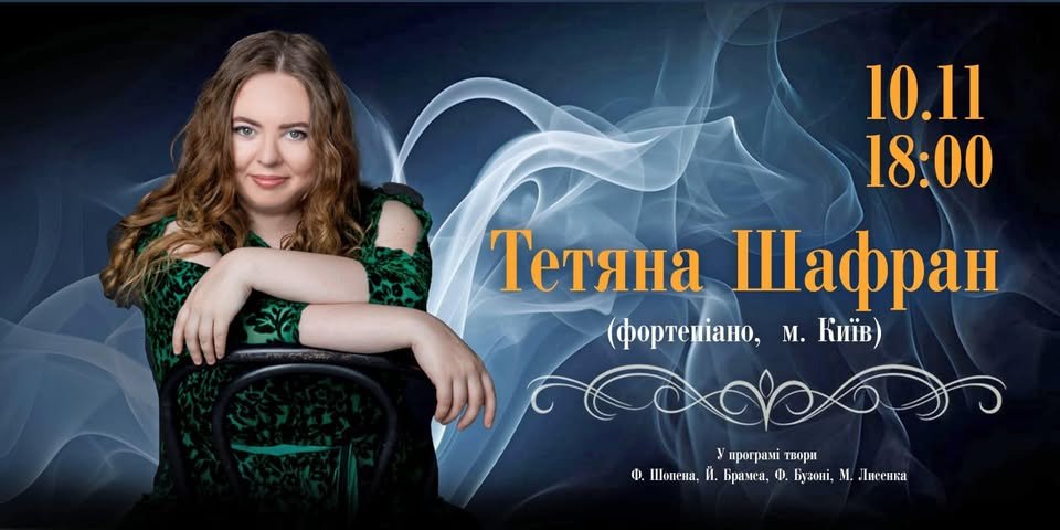 Знана піаністка Тетяна Шафран подарує вечір музики, що поєднує шопенівську лірику, брамсівську ніжність, українську елегію та блискучі варіації Бузоні. Її гра – це щирість, віртуозність і глибина, яку варто почути наживо.