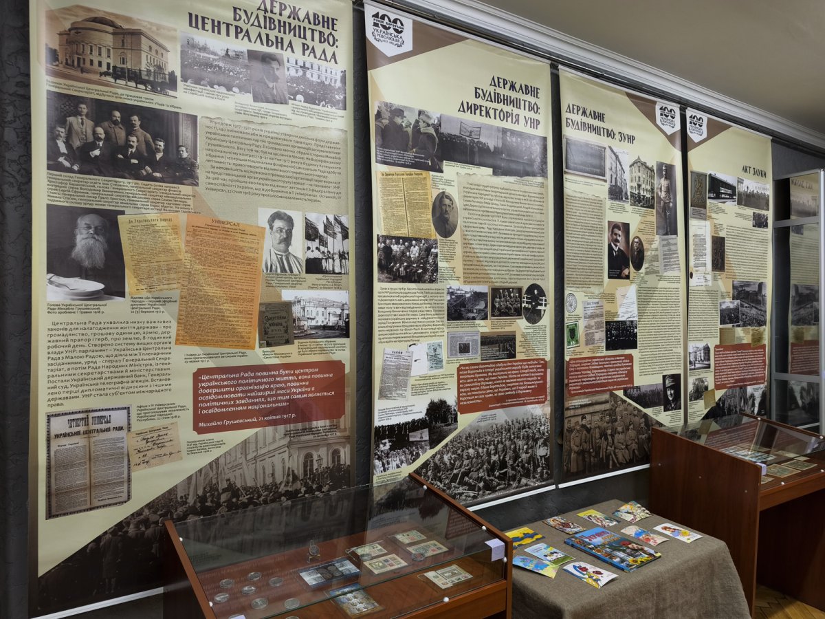 На виставці представлені музеалії доби Української революції 1917-1921 рр. та сучасної Незалежної України.