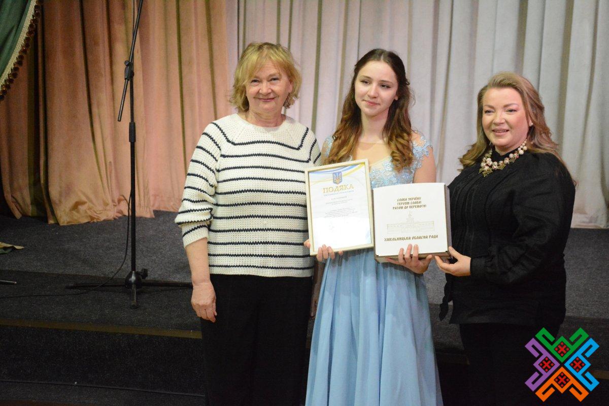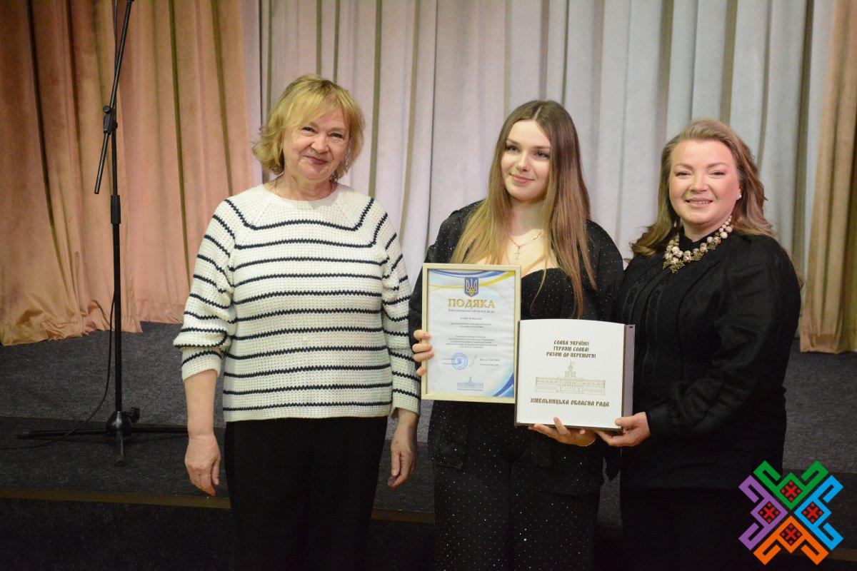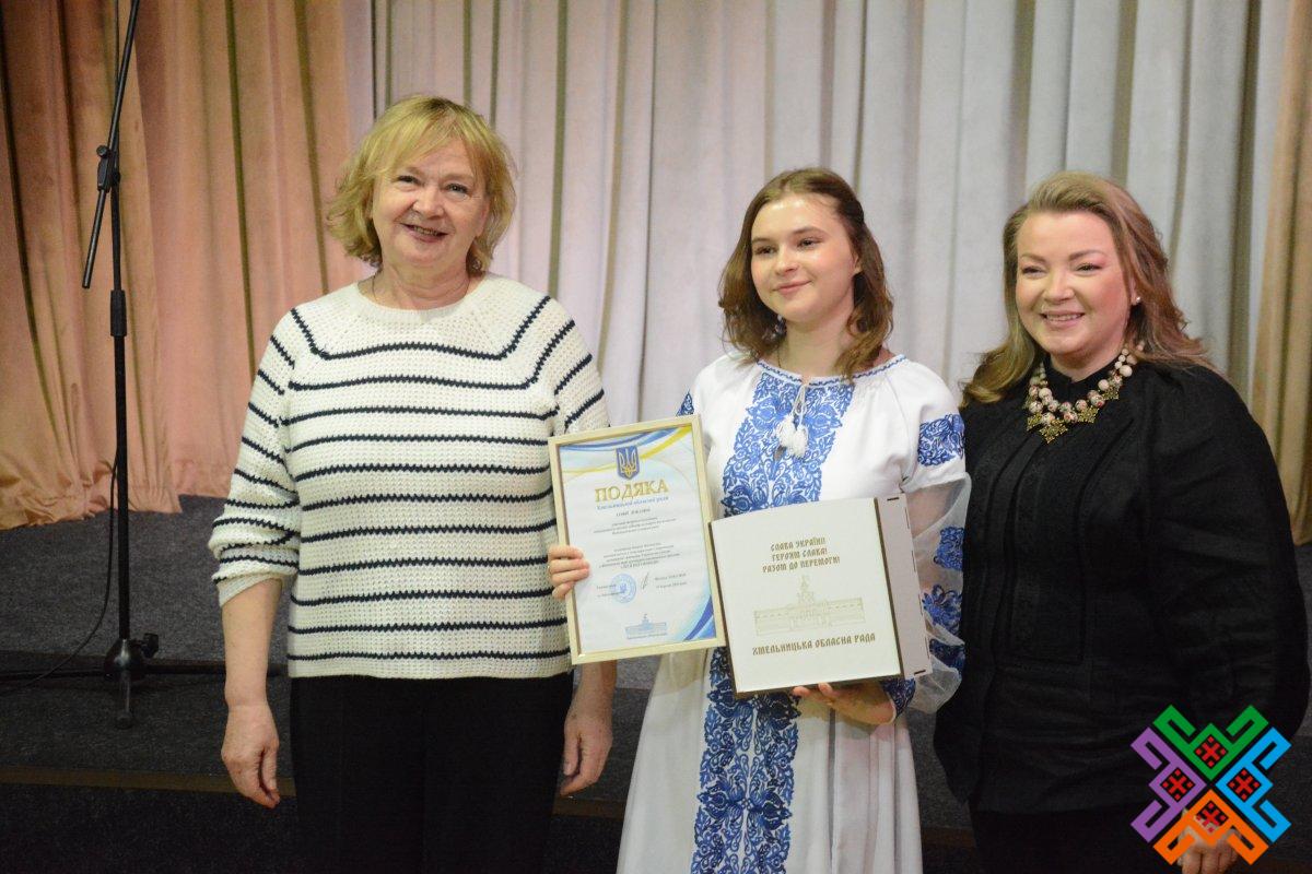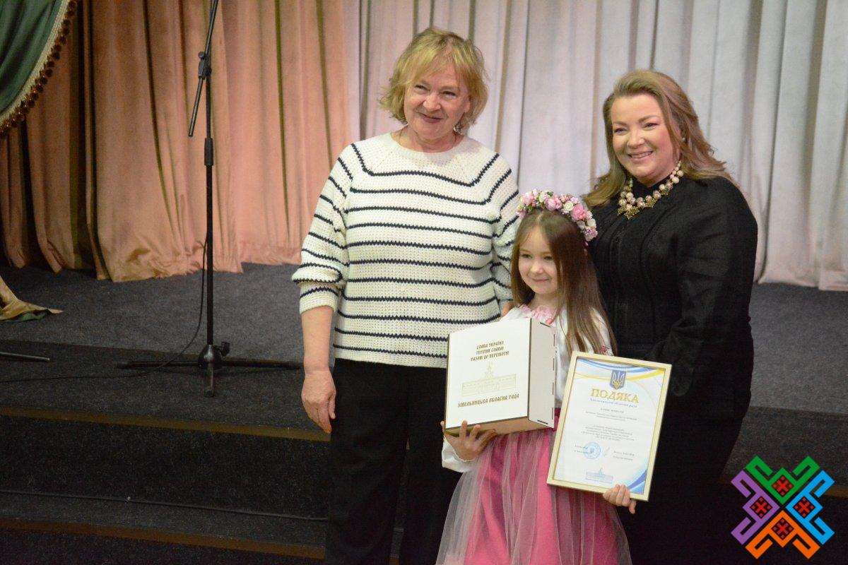 Від імені голови обласної ради Віолети Лабазюк Тетяна Зеленко спільно з директоркою обласного науково-методичного центру культури і мистецтва Майєю Онищук вручили колективам та солістам закладів культури області Подяки обласної ради та пам’ятні подарунки за активну творчу діяльність, вагомий внесок у популяризацію і збереження культурної спадщини України та участь у фінальному турі культурно-мистецького проєкту.