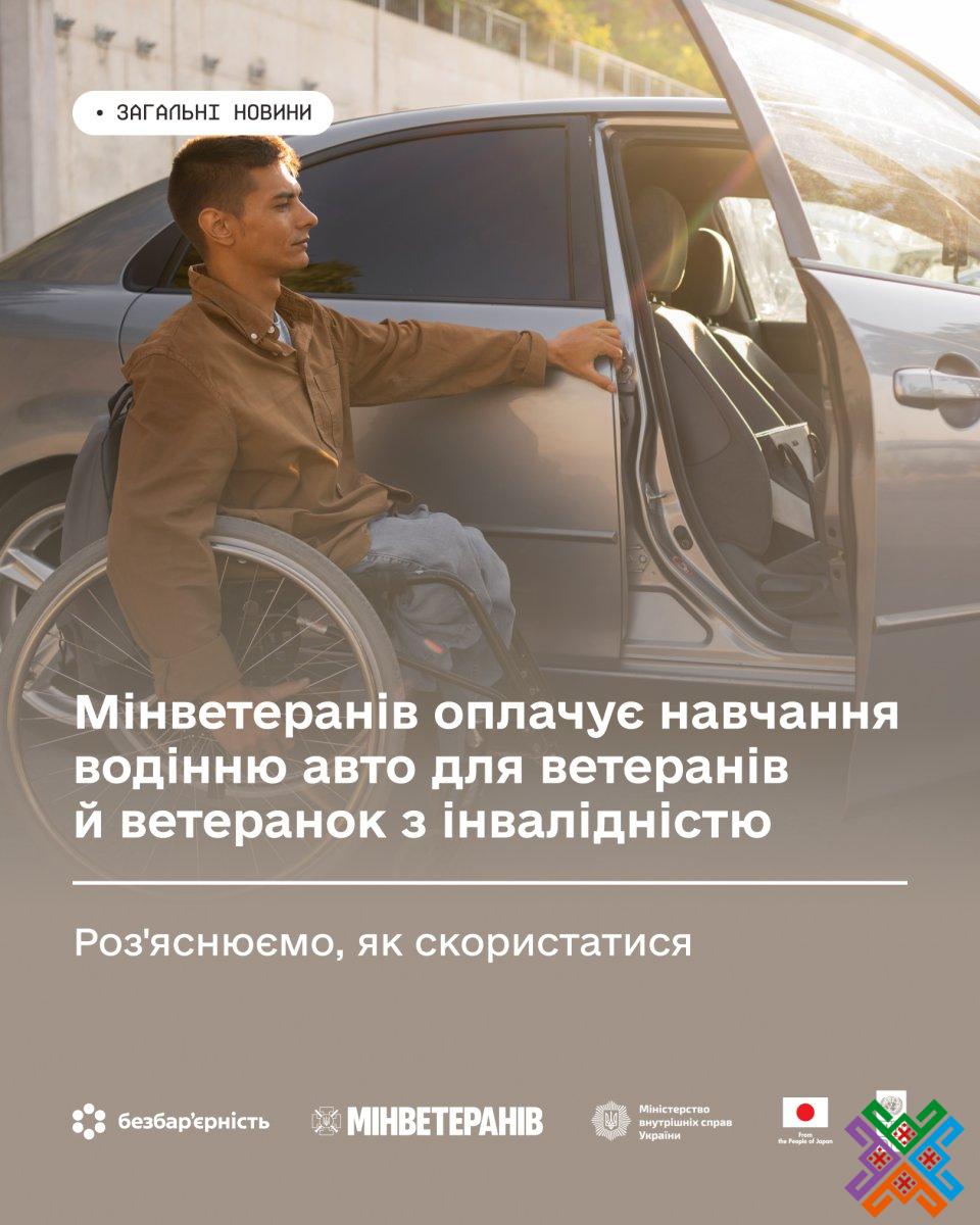 Навчання водінню на адаптованих авто для ветеранів й ветеранок з інвалідністю здійснюється на виконання Стратегії ветеранської політики до 2030 та в рамках флагманського проєкту “Безбар’єрні автошколи” Міністерства внутрішніх справ України у межах Національної стратегії безбарʼєрності, яка створена за ініціативи першої леді Олена Зеленська. Інформаційна кампанія здійснюється ПРООН UNDP Ukraine / ПРООН в Україні у межах проєкту “Трансформаційне відновлення задля безпеки людей в Україні” за фінансової підтримки Уряду Японії.