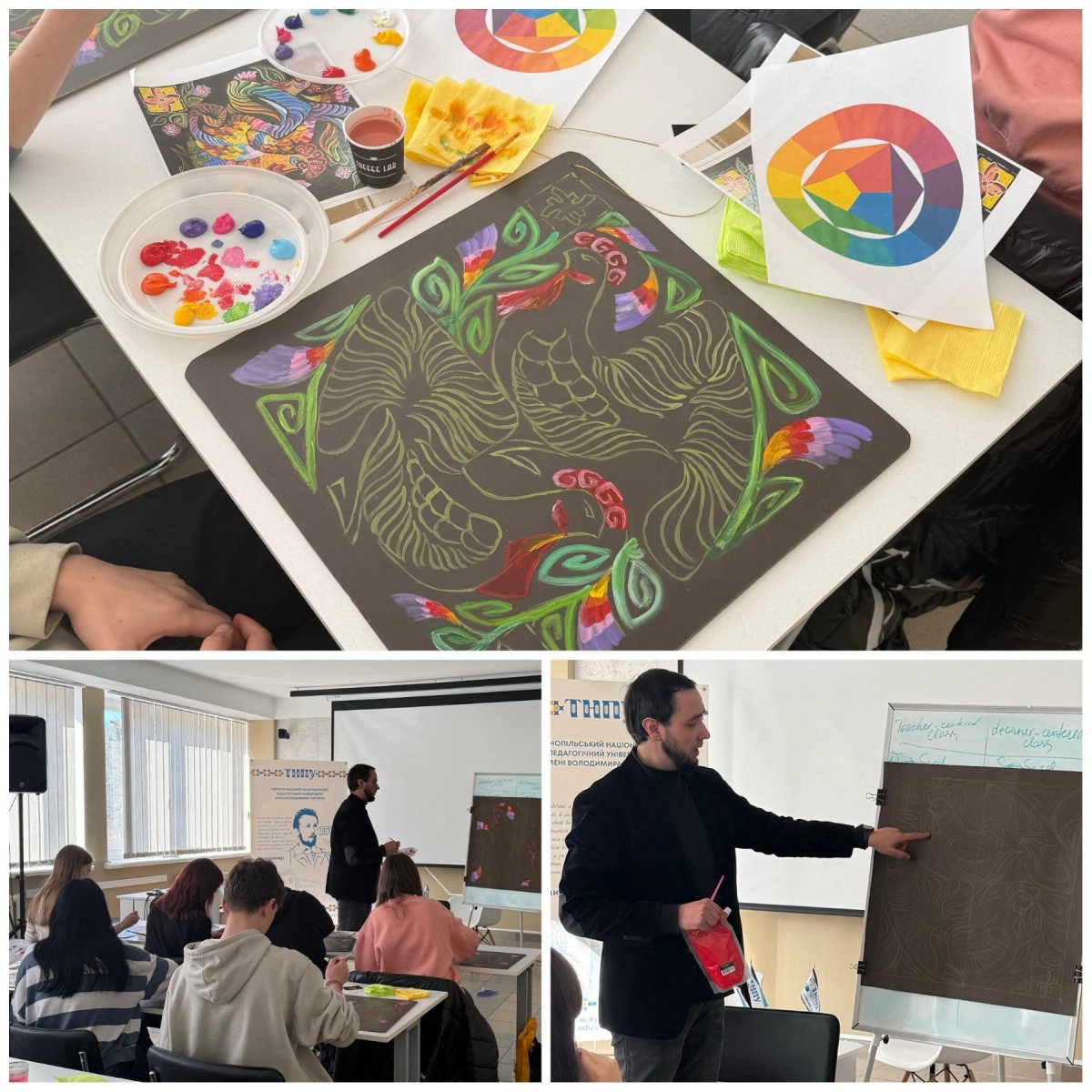 «ОБРАЗОТВОРЧИЙ ФОЛЬКЛОР». Художник-живописець, стипендіат Президента України, викладач кафедри образотворчого декоративно-прикладного мистецтва ХГПА Михайло Сорокін презентував традиційний український розпис як код регіональної культурної пам’яті та художньої ідентичності.