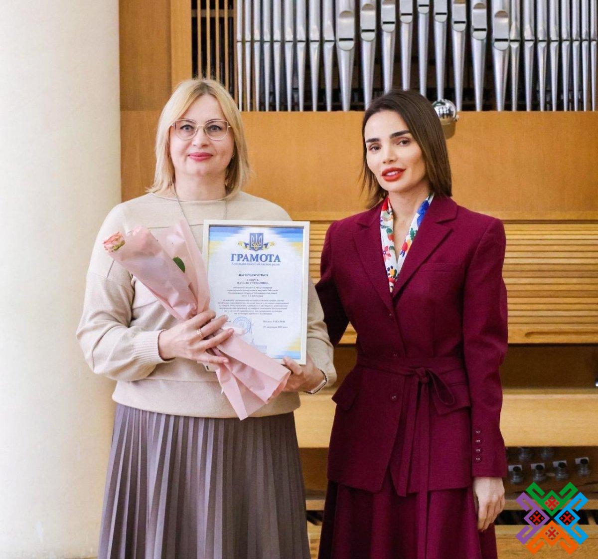 Також відзначила працівників закладів культури краю Грамотами обласної ради за активну громадянську позицію, сумлінну працю, високу професійну майстерність, вагомий внесок у розвиток національної культури, популяризацію українського мистецтва, відродження й примноження традицій культурної спадщини Хмельниччини та з нагоди Всеукраїнського дня працівників культури та майстрів народного мистецтва.
