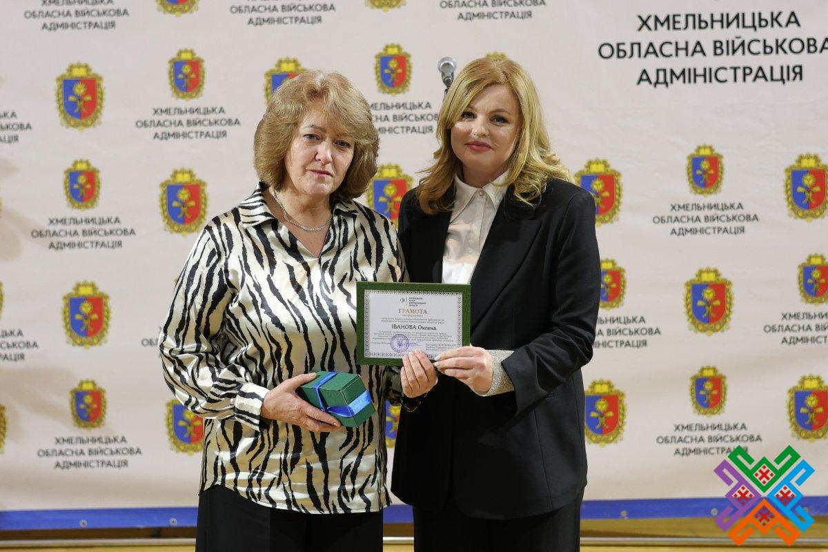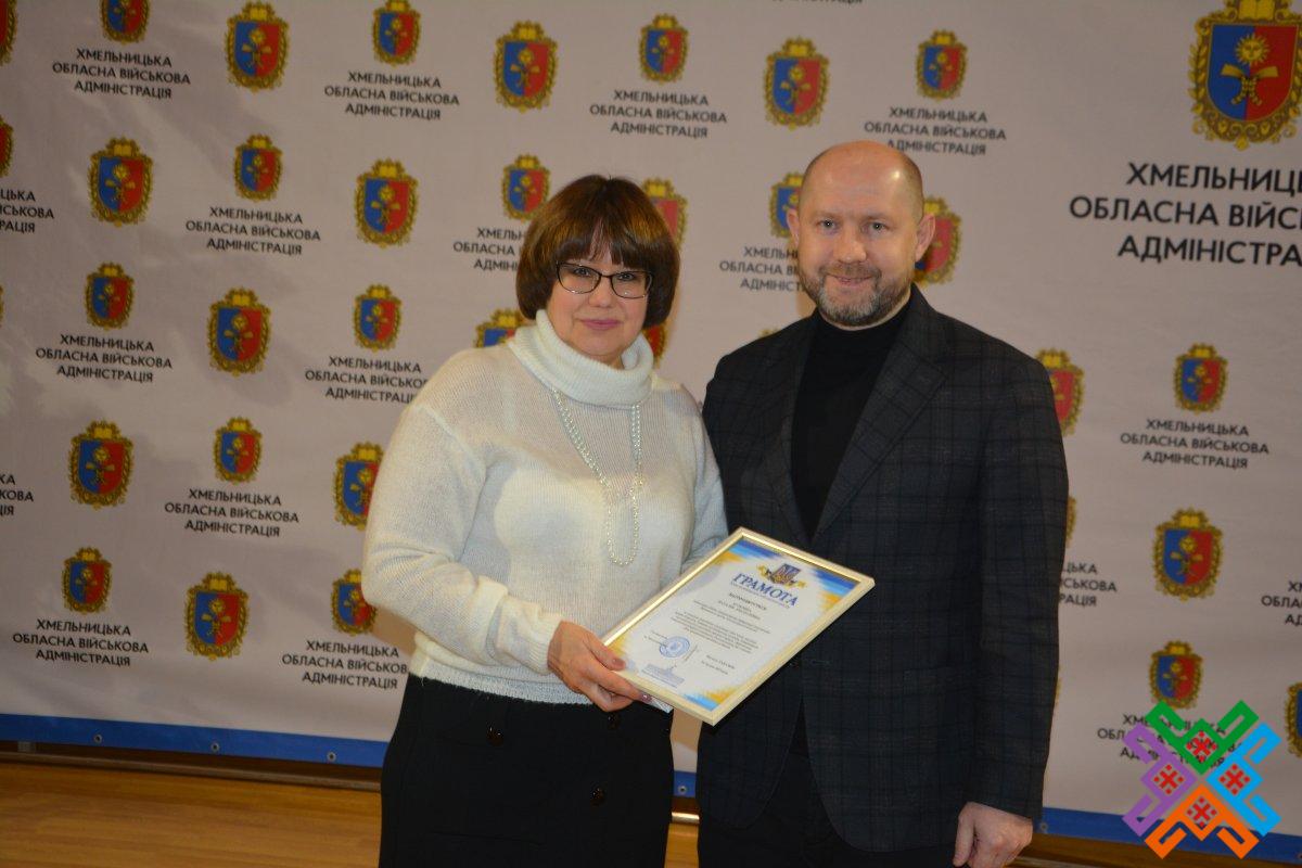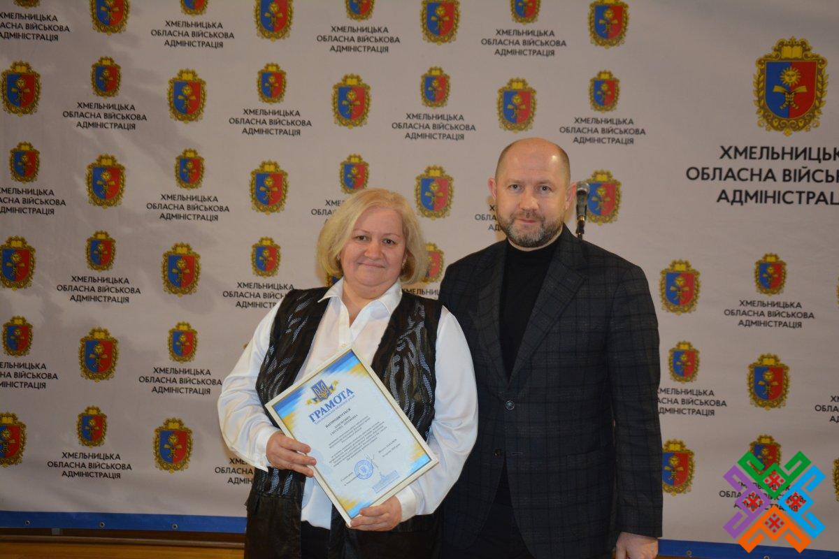 За високий професіоналізм та відповідальне ставлення до справи директор Державного архіву області Катерина Бурдуваліс нагородила Грамотою установи начальника відділу документаційного забезпечення виконавчого апарату обласної ради Оксану Іванову.