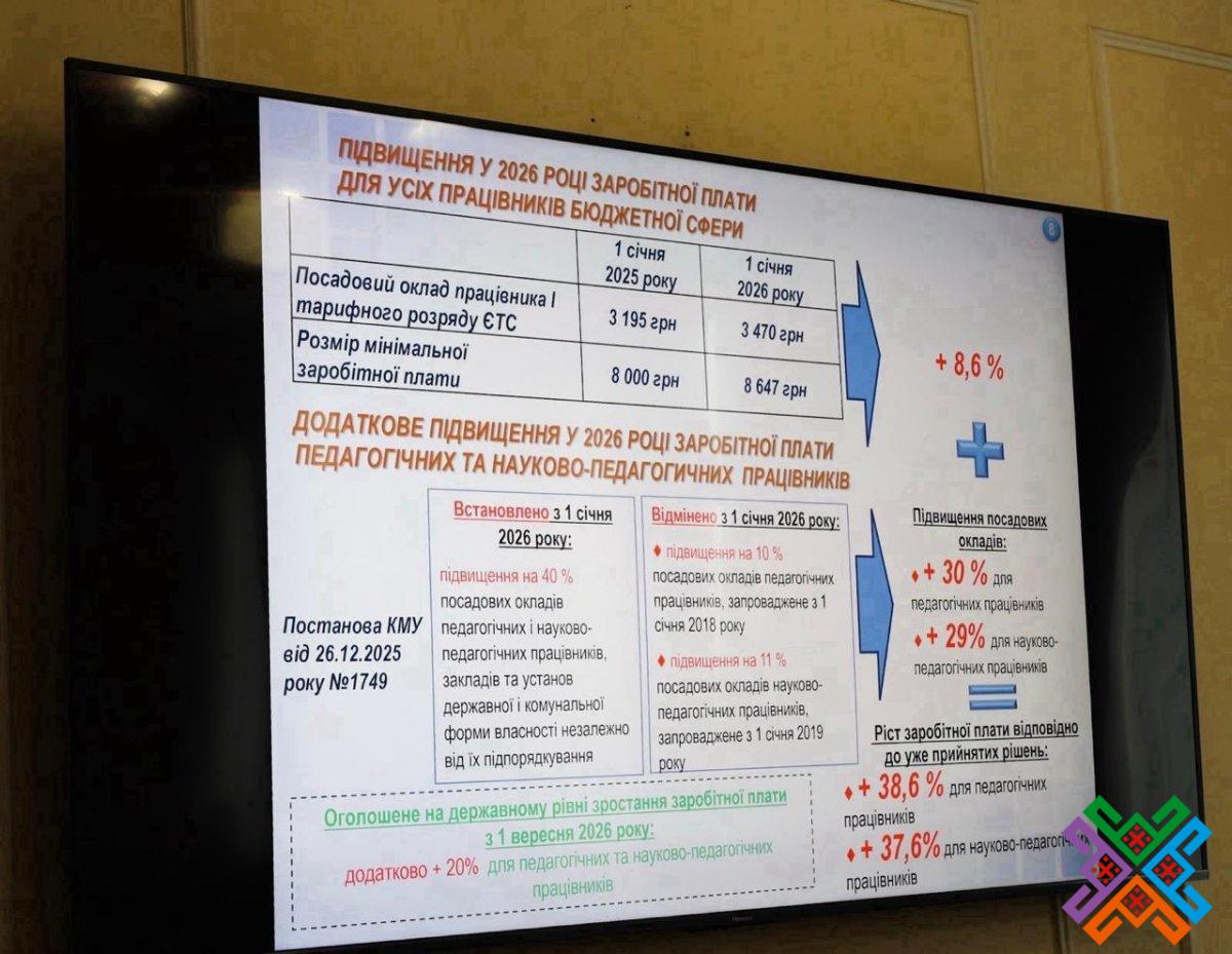 Передбачається підвищення на 30% посадових окладів педагогічних та науково-педагогічних працівників закладів та установ освіти. Підвищення у 2026 році заробітної плати працівників надавачів соціальних та реабілітаційних послуг, зокрема, застосування додаткового коефіцієнта підвищення посадових окладів 2,5.