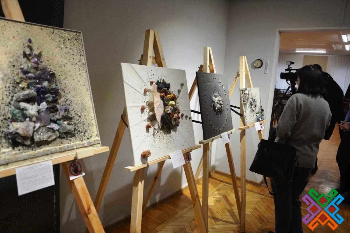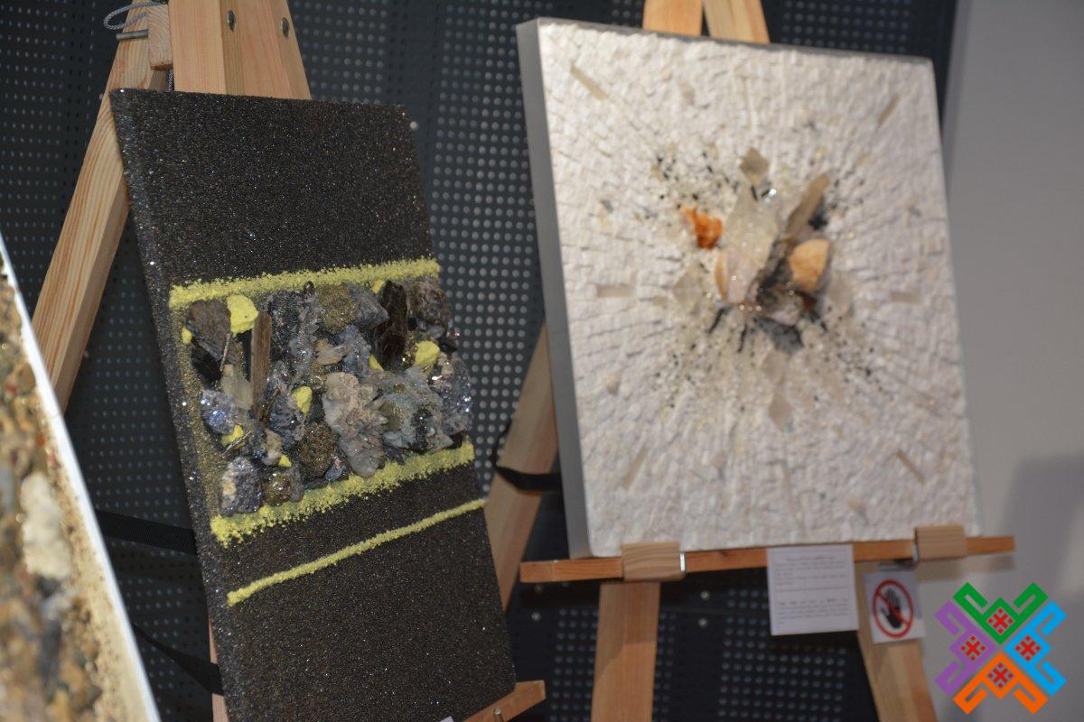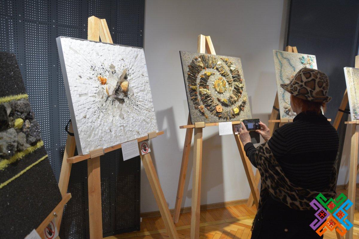 В експозиції представлені особливі картини майстрині із натурального каміння та мінералів з усього світу.