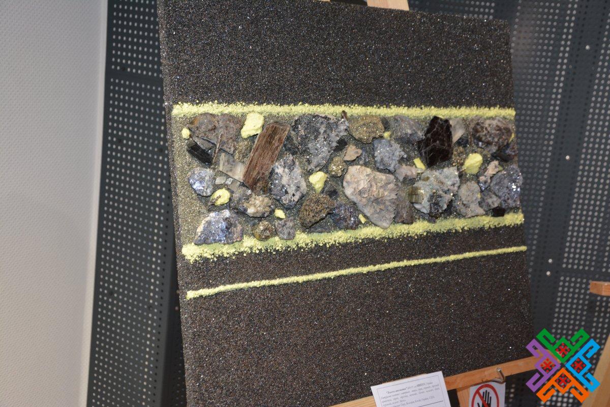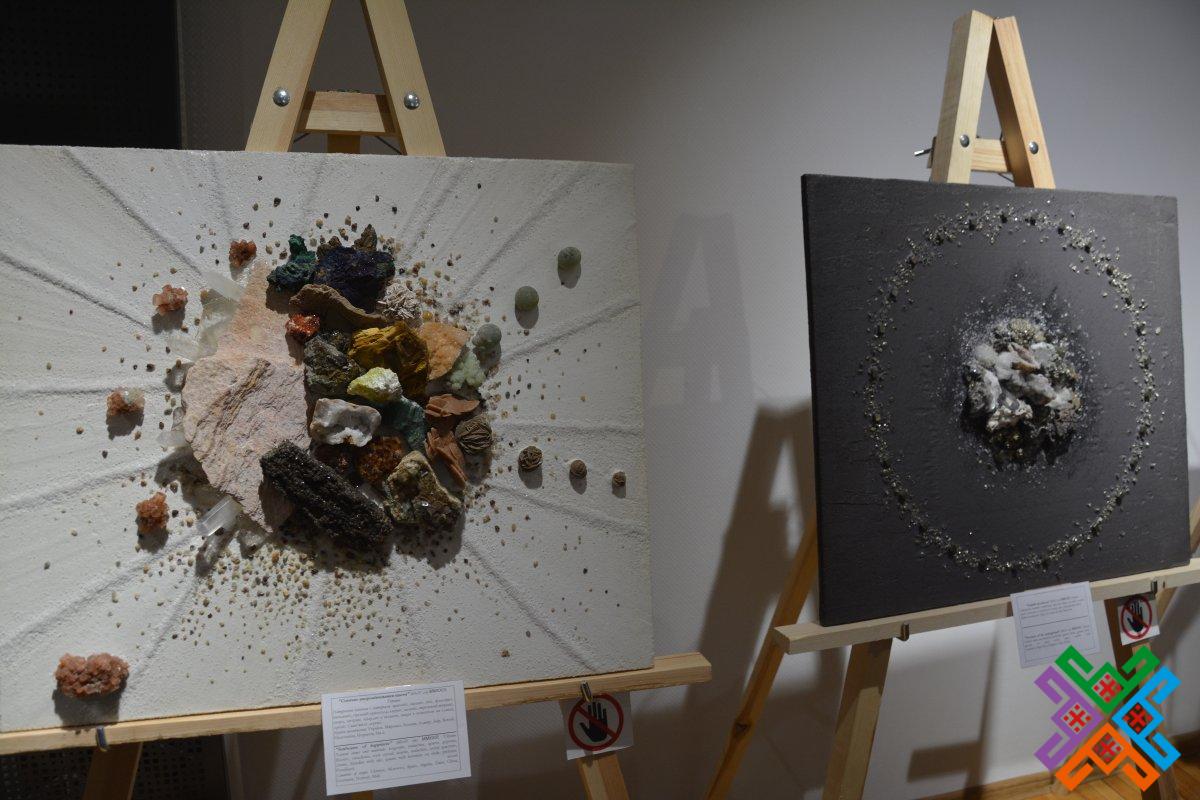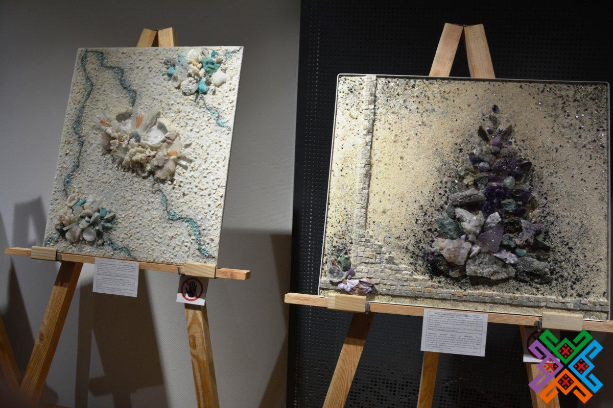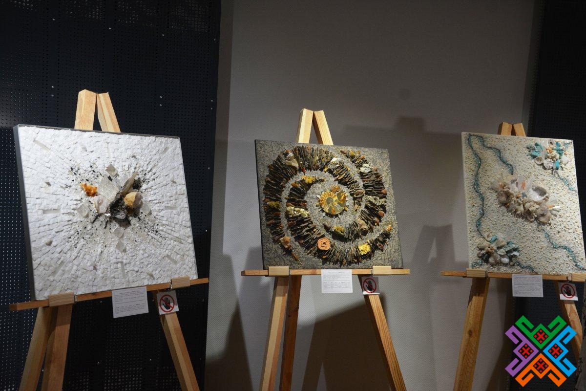 В експозиції представлені особливі картини майстрині із натурального каміння та мінералів з усього світу.