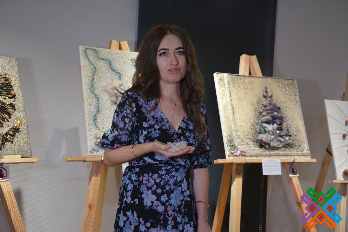 В експозиції представлені особливі картини майстрині із натурального каміння та мінералів з усього світу.
