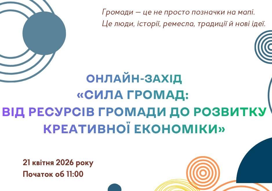 Запрошуються представники громад на нову зустріч із серії онлайн-заходів «Сила громад: від ресурсів громади до розвитку креативної економіки»!
