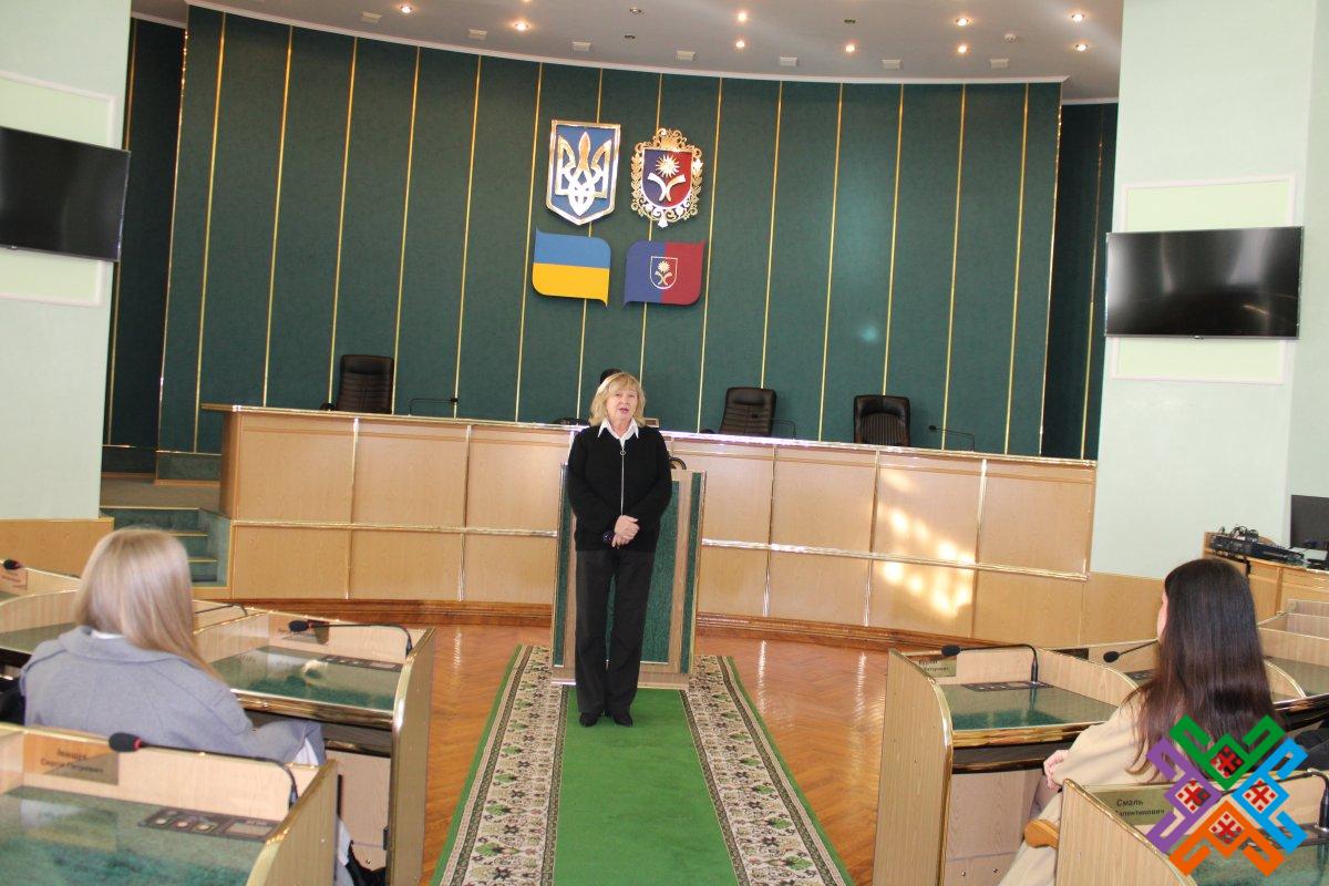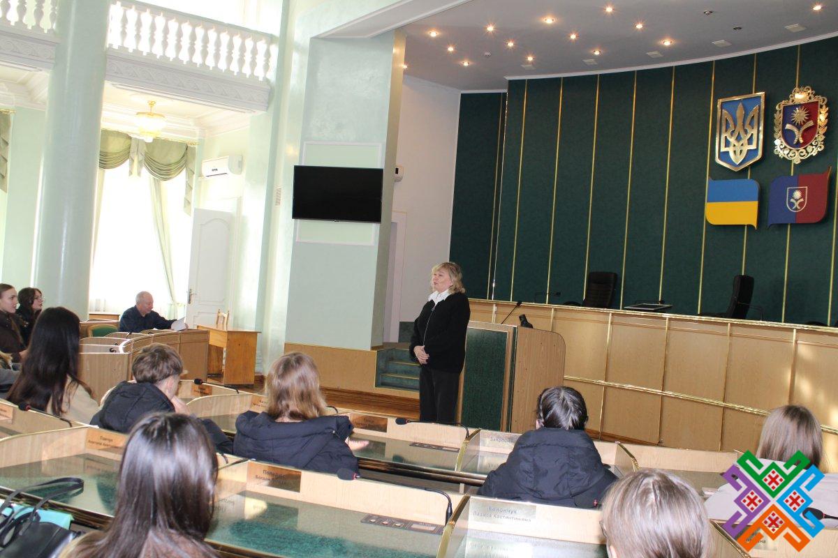 Заступник керівника виконавчого апарату обласної ради Тетяна Зеленко ознайомила юних гостей із основними напрямками роботи депутатського корпусу та виконавчого апарату обласної ради, розповіла про депутатські фракції та постійні комісії. Говорили також про взаємодію обласної ради з іншими органами місцевого самоврядування, виконавчої влади та громадськими організаціями.