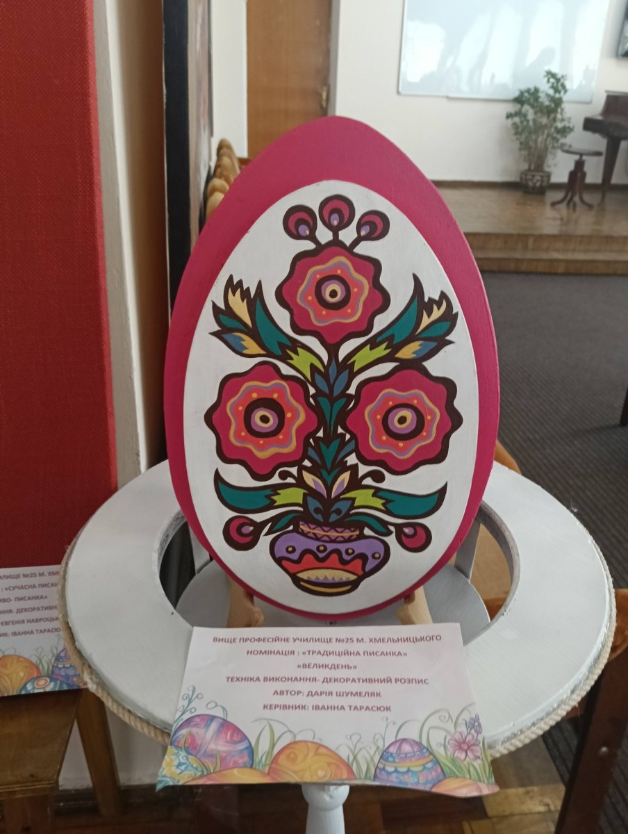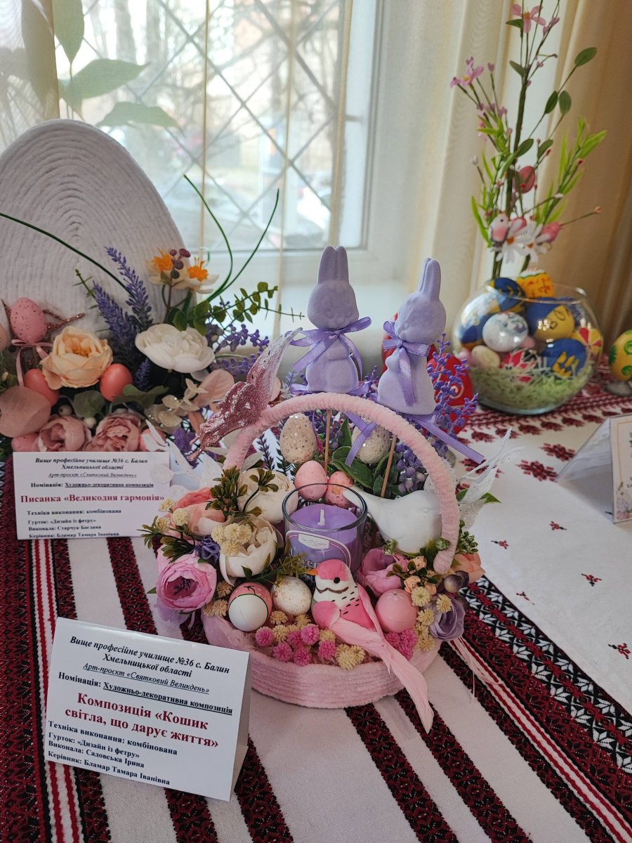 Кожна представлена на виставці робота – від класичної писанки до модернових композицій – це справжній витвір мистецтва, живий зв’язок поколінь, де традиційні орнаменти переплітаються з новітнім баченням молодих митців. Експозиція вражає різноманіттям технік і форм. Роботи вирізняються творчим підходом, естетичною виразністю та глибоким осмисленням українських великодніх звичаїв. Організація арт-проєкту сприяє збереженню та популяризації національних традицій, розвитку творчих здібностей молоді.
