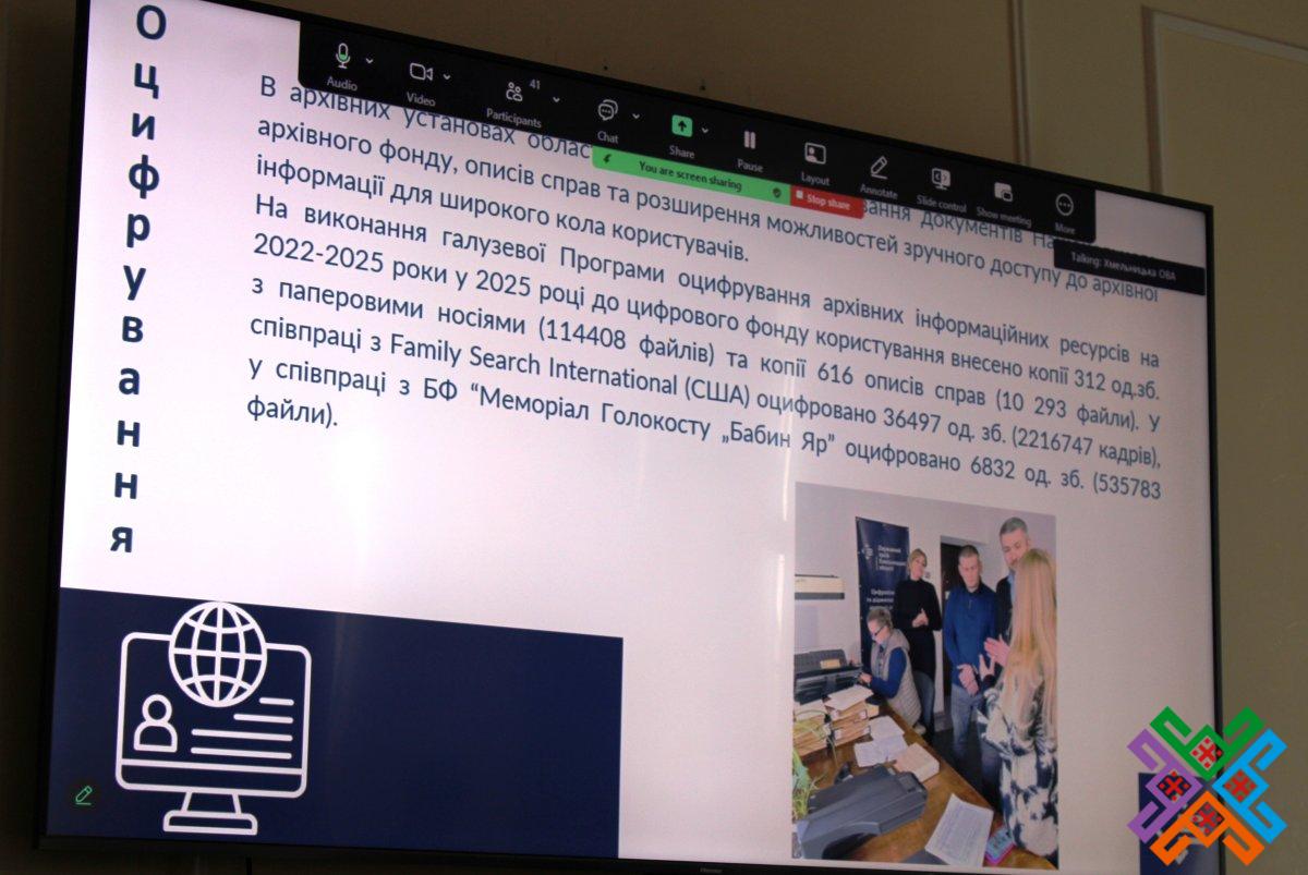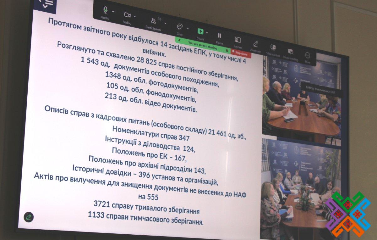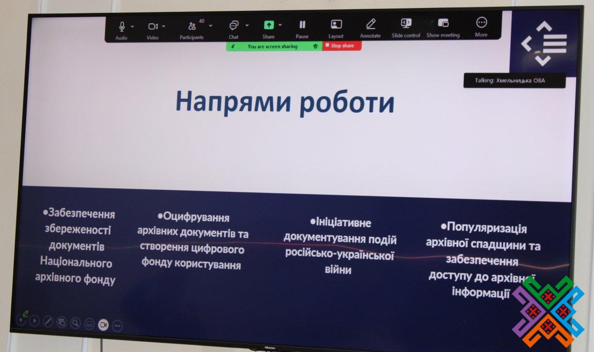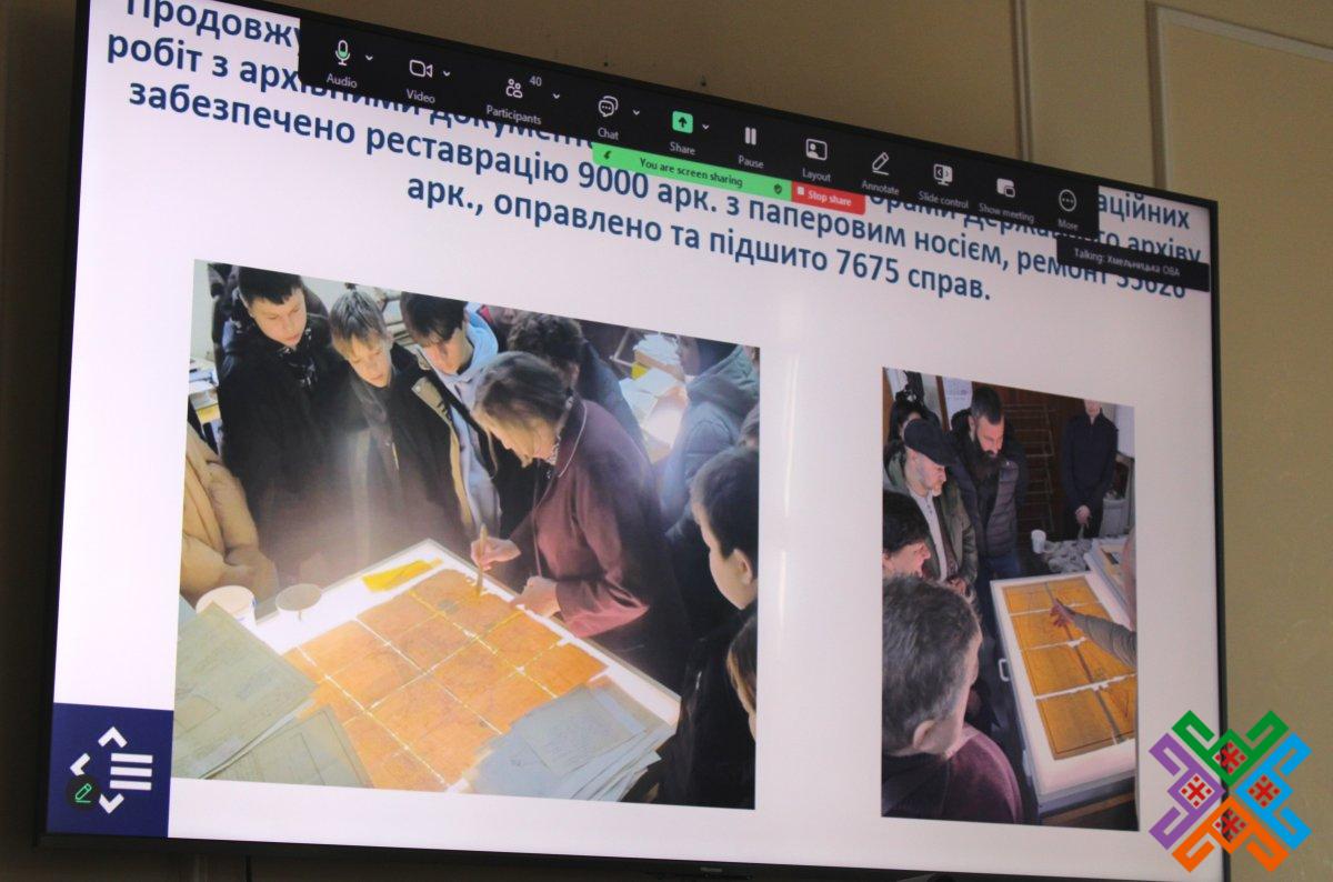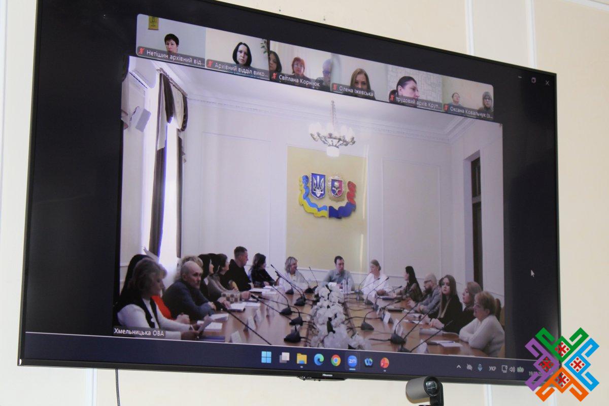 У режимі онлайн до засідання долучилися начальники архівних відділів райдержадміністрацій, міських рад та завідуючі трудових архівів.