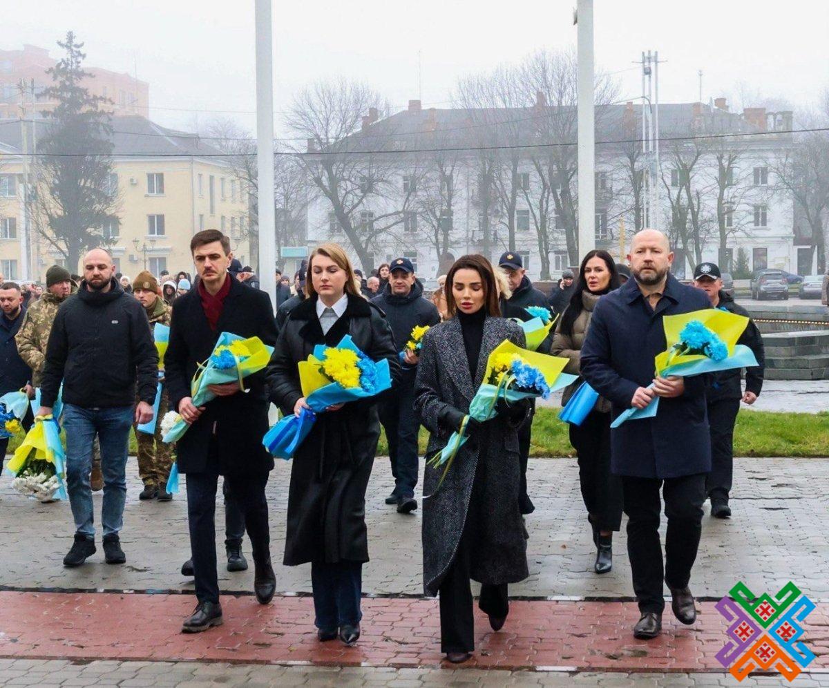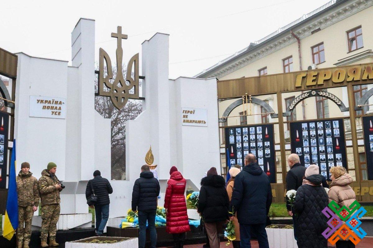 Сьогодні за участі голови обласної ради Віолети Лабазюк, її заступників Володимира Гончарука, Валентина Соколюка, Тетяни Зеленко, працівників виконавчого апарату, керівництва обласної військової адміністрації, Хмельницької міської ради, силових структур та жителів обласного центру відбулося урочисте покладання квітів до памʼятника Героям Небесної Сотні та меморіальної Стели пам’яті героїв Небесної Сотні та Героїв неоголошеної війни на сході України.