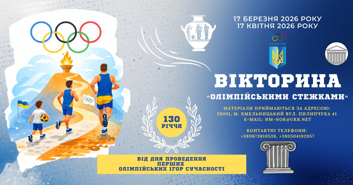З нагоди 130-ї річниці від дня проведення перших Олімпійських ігор сучасності з метою популяризації та розвитку Олімпійського руху, стимулювання пізнавальної і соціальної активності громадян, залучення населення області до занять фізичної культурою і спортом проводиться обласна вікторина «Олімпійськими стежками».