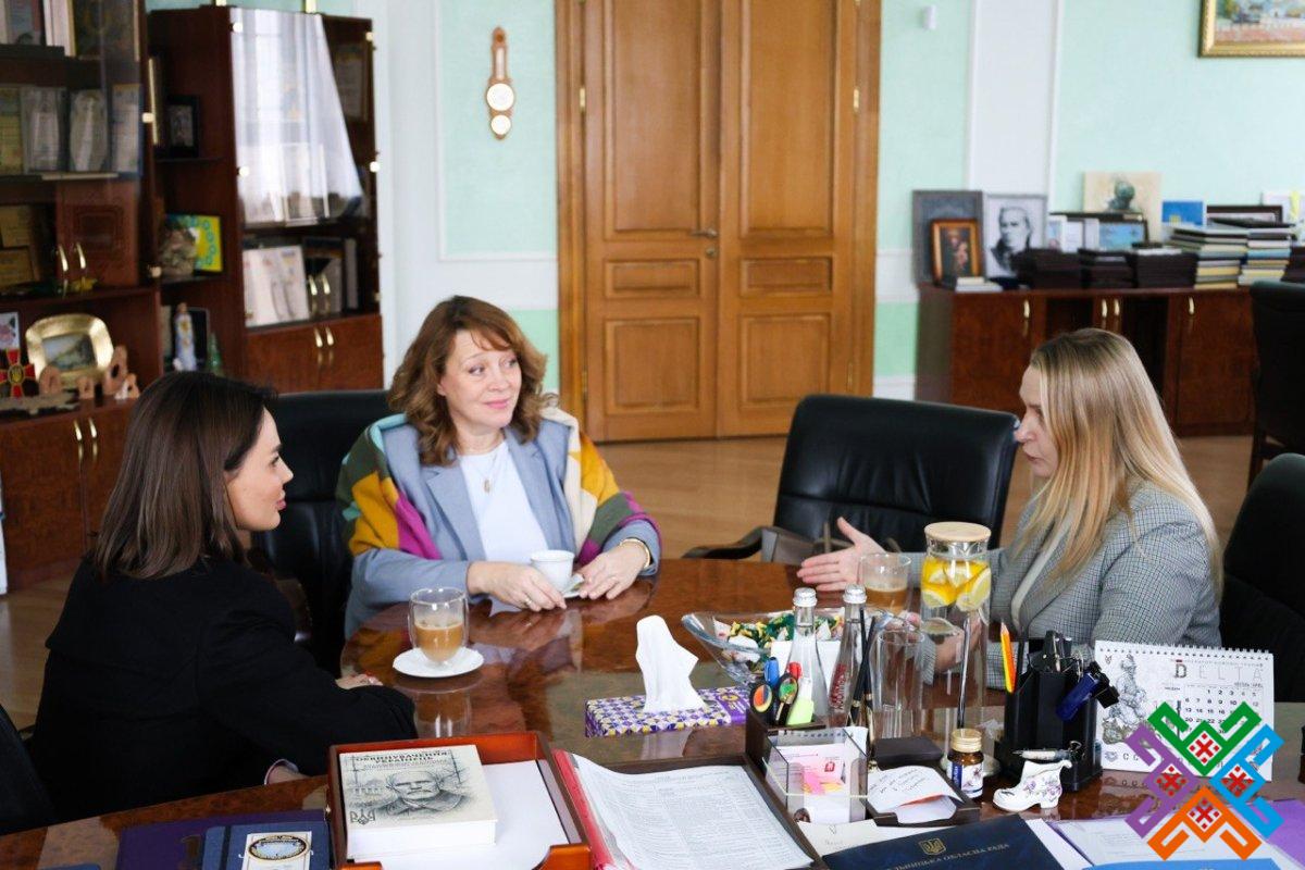 Сьогодні голова обласної ради Віолета Лабазюк мала робочу зустріч з керівницею громадської організації «Міжнародне обʼєднання жінок МОЖУ», генеральним директором товариства з обмеженою відповідальністю «Тін Імпекс» Аліною Скомороховою та новою директоркою з загальних питань ТОВ “ХМЕЛЬНИЦЬКХЛІБ” Ольгою Заїкою.