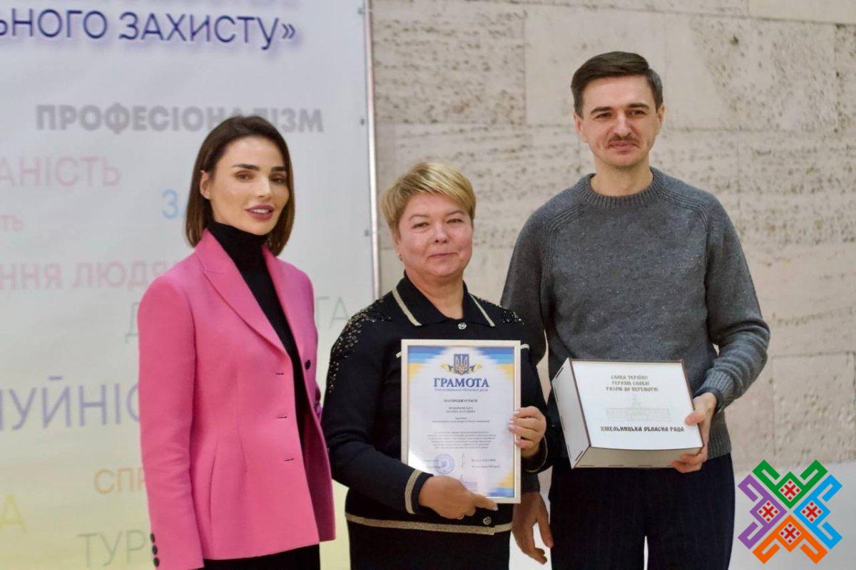 За сумлінну та плідну працю, високий професіоналізм, турботу й гуманність у ставленні до громадян, вагомий особистий внесок у виконання завдань, пов’язаних із реалізацією державної політики з питань соціального захисту населення Віолета Олександрівна разом із Володимиром Володимировичем відзначили працівників соціальної сфери області Грамотами, Подяками обласної ради та цінними подарунками. Також за багаторічну віддану працю, невтомну енергію, високу професійну майстерність, мудре керівництво та з нагоди виходу на заслужений відпочинок нагрудним знаком «За відданість державі» нагородили директора комунального закладу – Хмельницького геріатричного пансіонату для ветеранів війни та праці Івана Моцного.