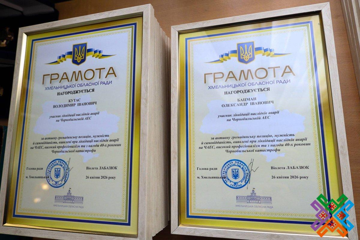 Аби вшанувати 40-ву річницю катастрофи та віддати належну шану жителям Хмельниччини, які стали на захист життя у час найбільшої техногенної катастрофи ХХ століття у Будинку рад відбулися урочистості. У залі зібралися керівництво – голова обласної ради Віолета Лабазюк, заступник Валентин Соколюк, представники обласної військової адміністрації та ліквідатори катастрофи на ЧАЕС з нашого регіону.