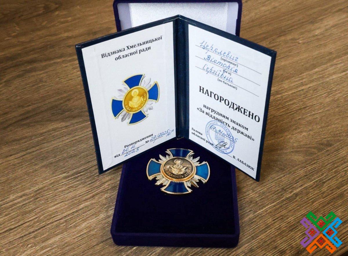 Віолета Олександрівна подякувала Вікторії Сергіївні за багаторічну сумлінну працю та наукову діяльність, спрямовану на дослідження культури нашого регіону, а також відзначила нагрудним знаком Хмельницької обласної ради «За відданість державі».