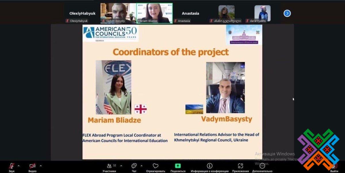 Голова обласної ради Віолета Лабазюк привітала учасників тристороннього міжнародного онлайн-семінару «Світло, камера, школа!» – нової серії освітніх ініціатив між школярами України, Грузії та США.
