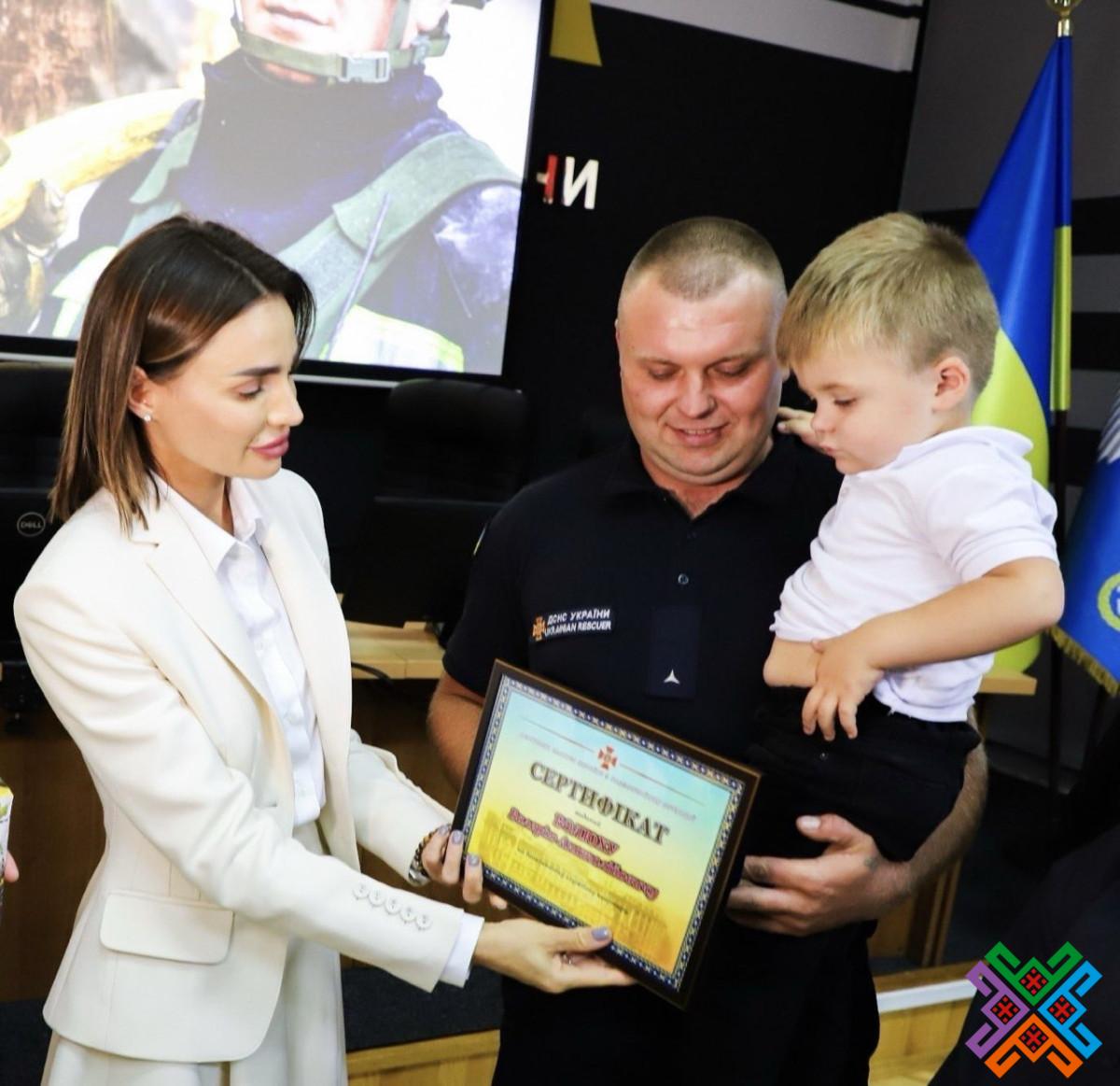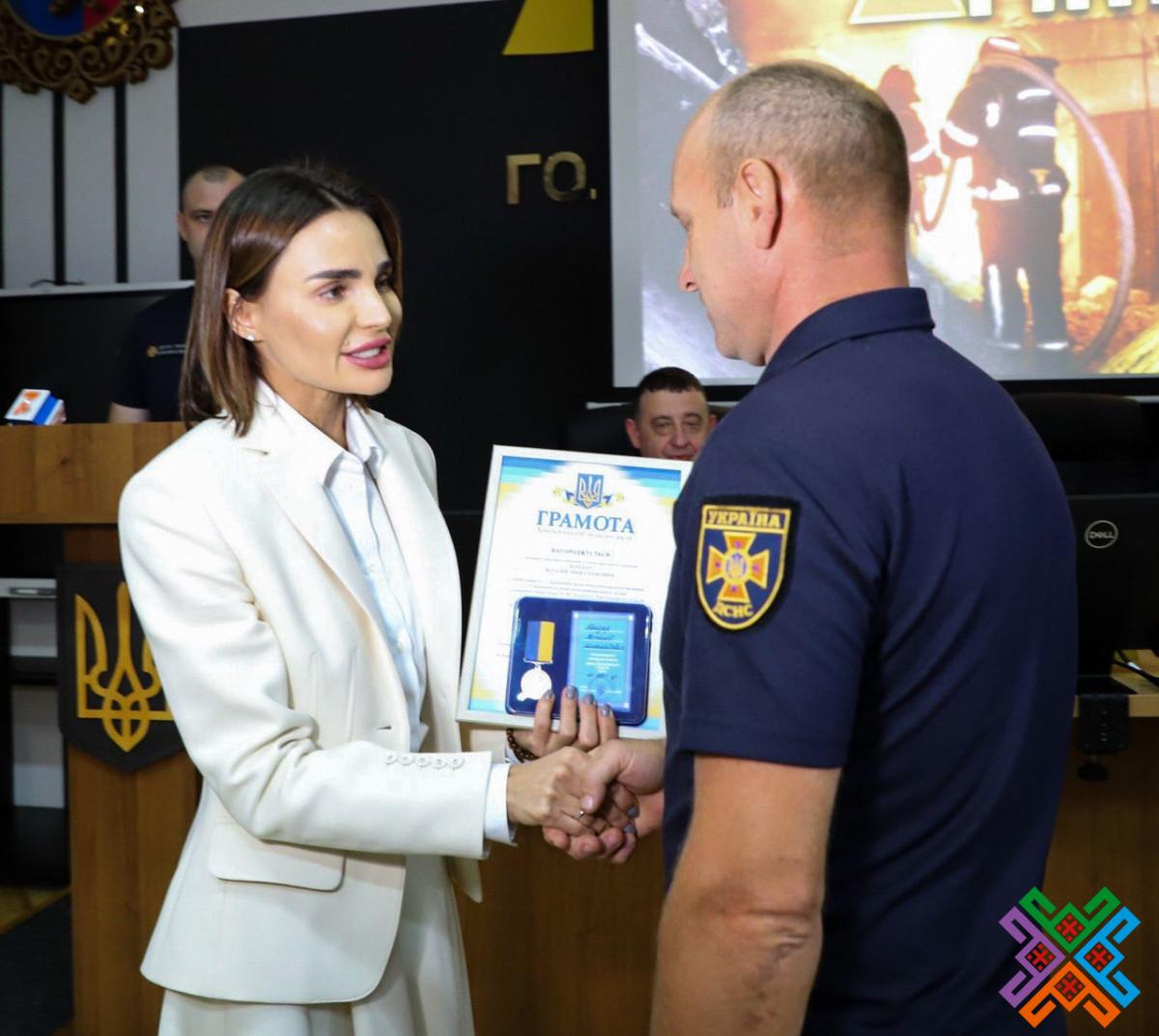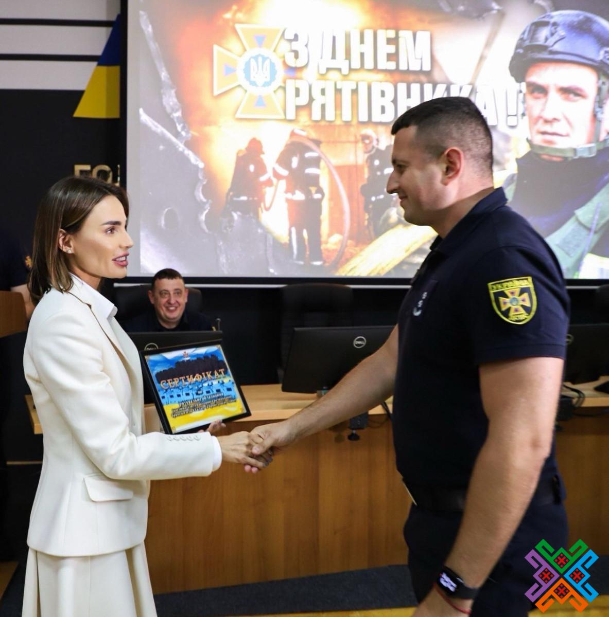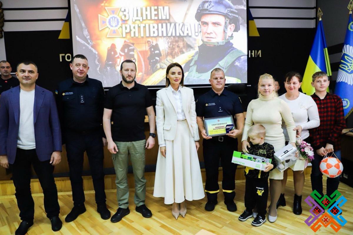 Окрім цього, спільно з керівниками області та міста Віолета Олександрівна вручила рятівникам сертифікат на рятувальне обладнання та ключі на службове житло.