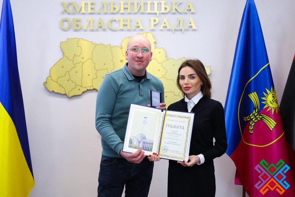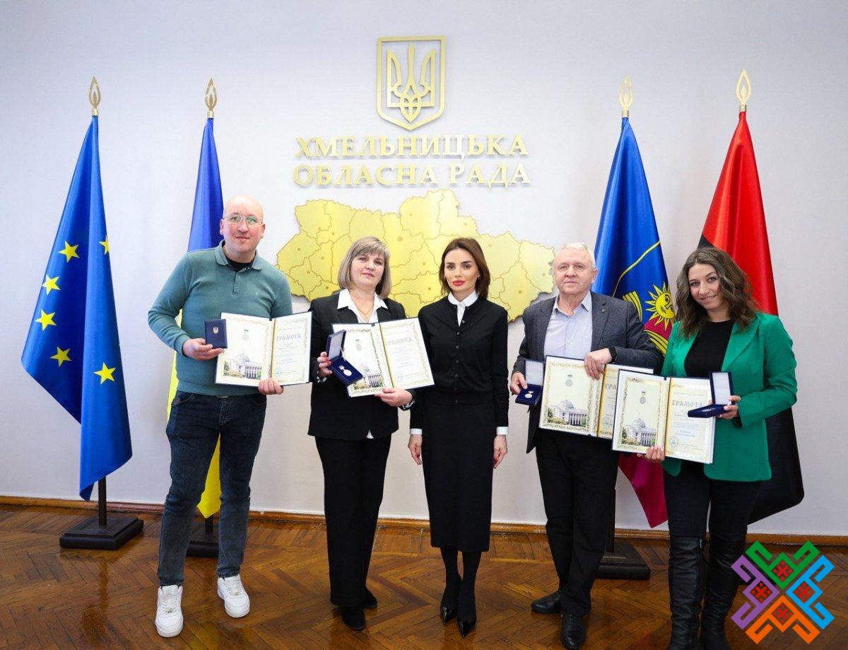 За впровадження сучасних інноваційних методів навчання, виховання учнівської та студентської молоді, плідну науково-педагогічну діяльність, сумлінну працю і високий професіоналізм голова обласної ради вручила Грамоти Верховної Ради України вчителю Полянського ліцею Волочиської міської ради Володимиру Басистюку, директору Волочиського ліцею №2 Волочиської міської ради Віктору Ліннику, директору Богданівецької гімназії Волочиської міської ради Тетяні Стрихар, а також директору та викладачу класу хореографії Гвардійської дитячої школи мистецтв Гвардійської сільської ради Олені Гуменній.