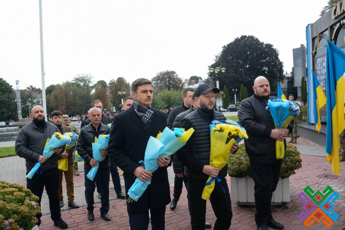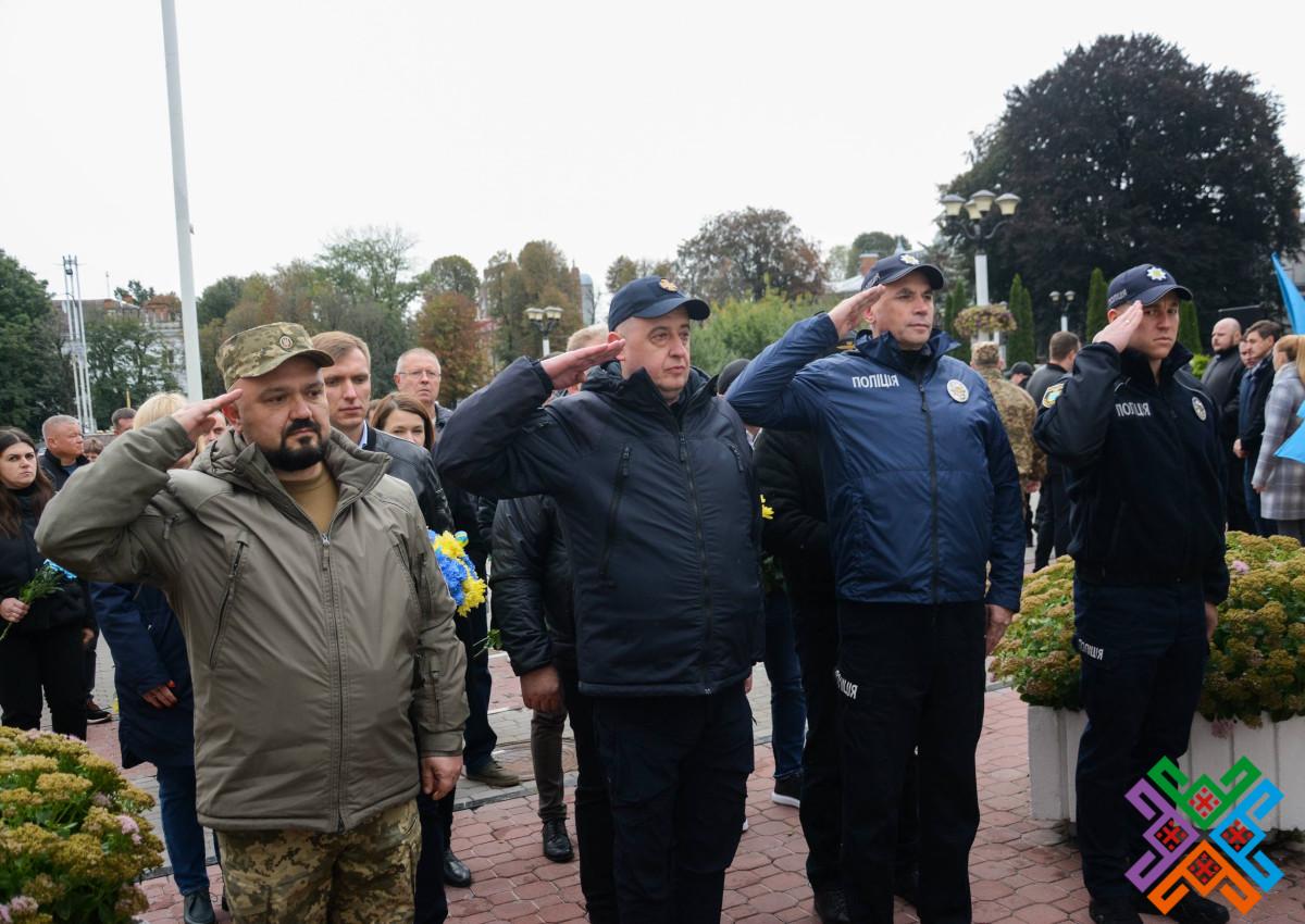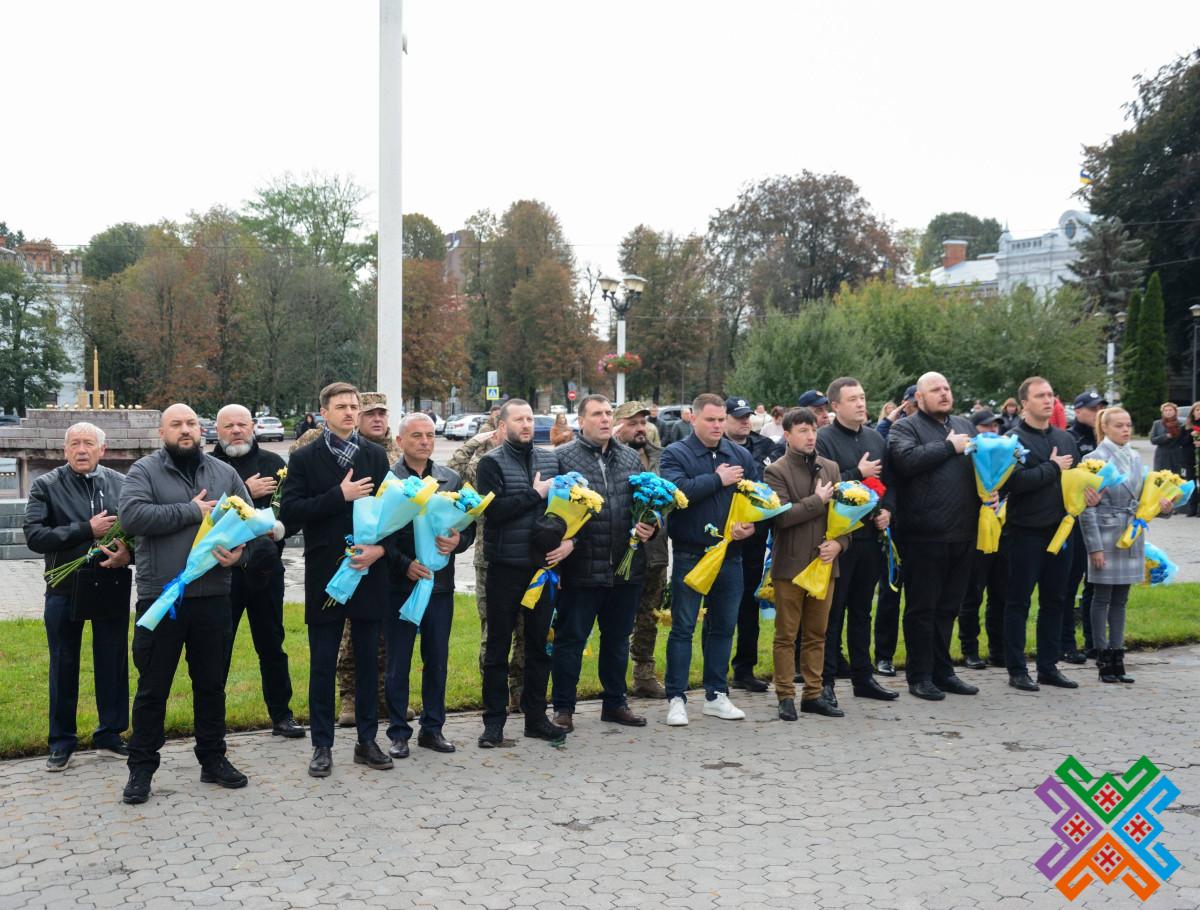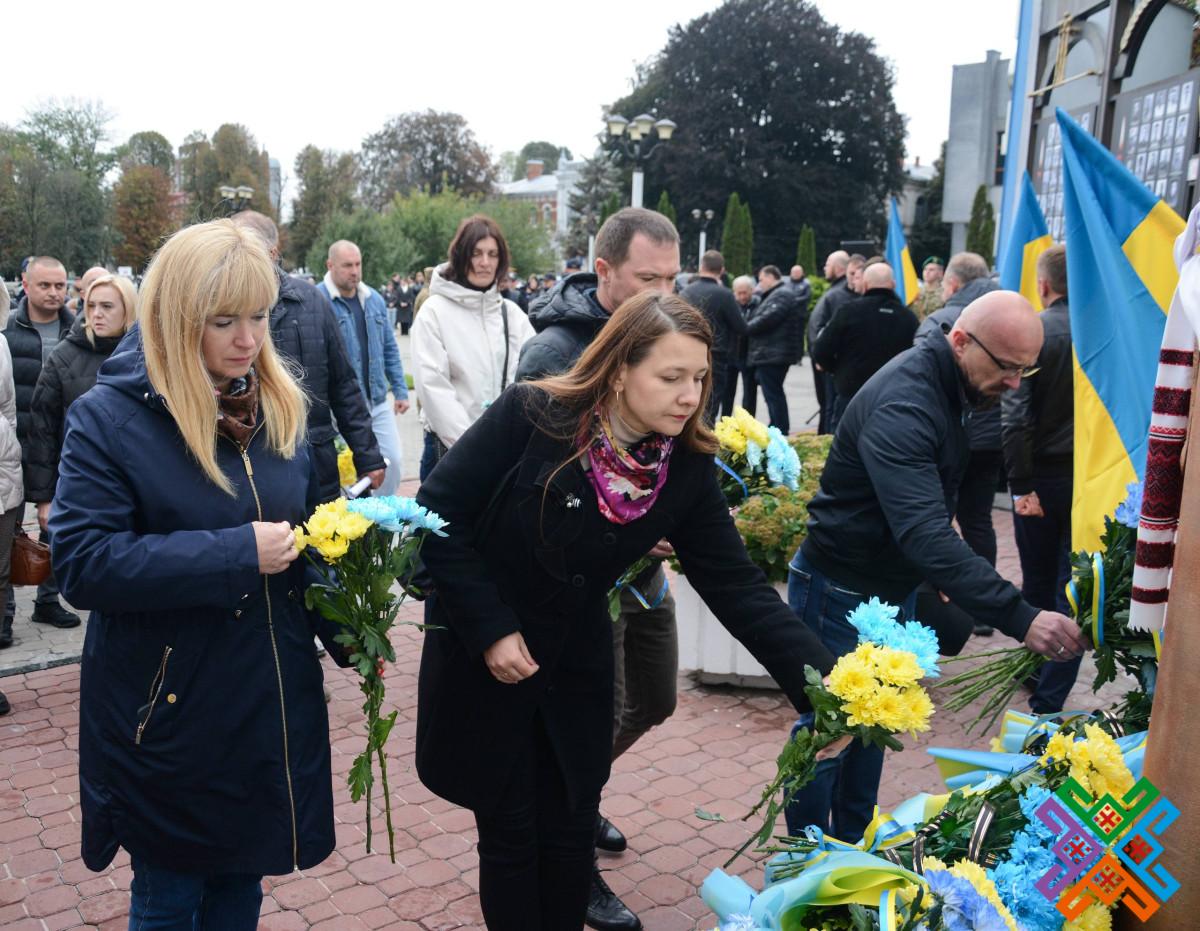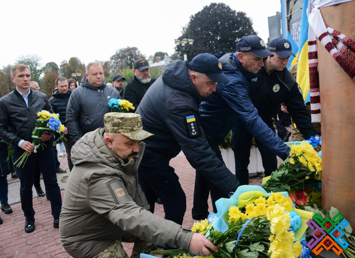 З цієї нагоди у місті Хмельницький відбулося урочисте покладання квітів до меморіальної Стели пам’яті героїв Небесної Сотні та Героїв неоголошеної війни на Сході України. У заході взяли участь перший заступник голови обласної ради Володимир Гончарук, працівники виконавчого апарату обласної ради, народні депутати України, керівництво обласної та районної військових адміністрацій, Хмельницької міської ради, представники силових структур та правоохоронних органів області.