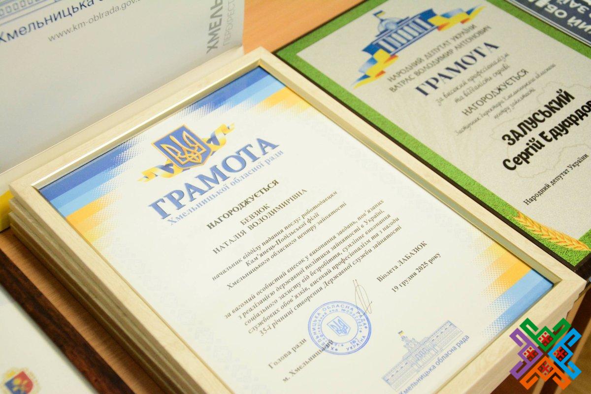 За вагомий особистий внесок у виконання завдань, пов’язаних з реалізацією державної політики зайнятості в Україні, соціального захисту від безробіття, сумлінне виконання службових обов’язків та високий професіоналізм Володимир Гончарук вручив кращим працівникам обласного центру зайнятості Грамоти й Подяки обласної ради.