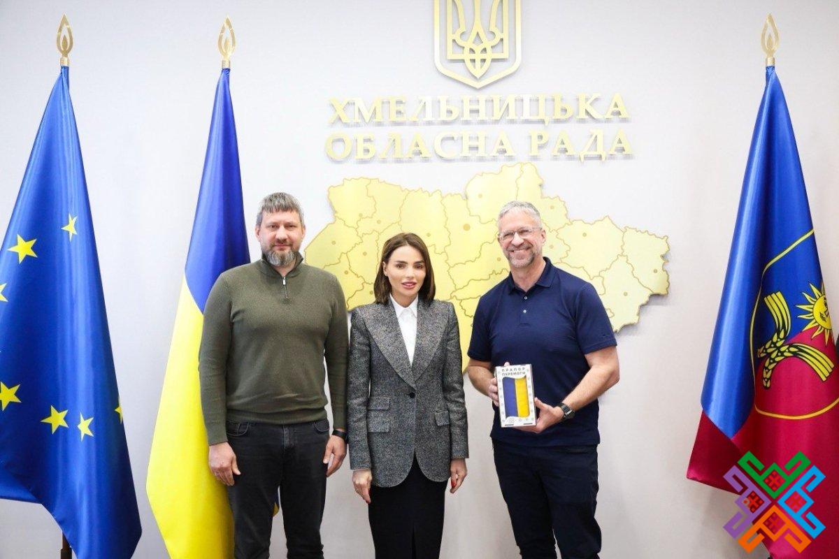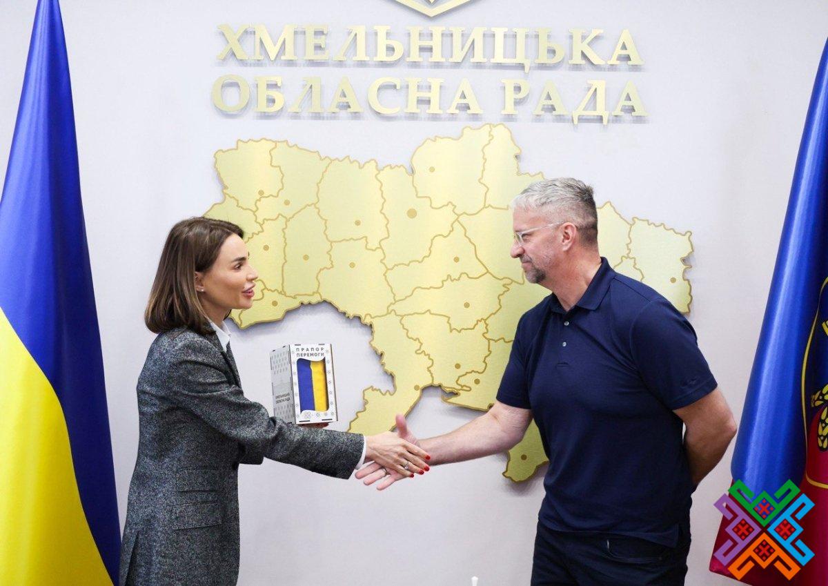 На завершення зустрічі, у знак подяки, голова обласної ради подарувала пану Джошуа прапор України.