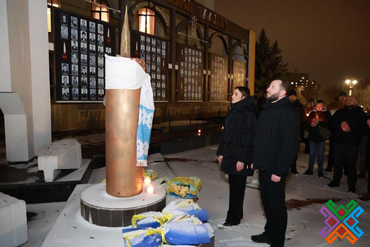Сьогодні в обласному центрі біля меморіальної Стели пам’яті героїв Небесної Сотні та Героїв неоголошеної війни на сході України пройшов символічний меморіальний захід-флешмоб «Запали різдвяну свічку пам’яті». У заході взяла участь голова обласної ради Віолета Лабазюк та її заступники Володимир Гончарук та Валентин Соколюк, керівництво обласної військової адміністрації, представники духовенства, члени родин полеглих захисників.