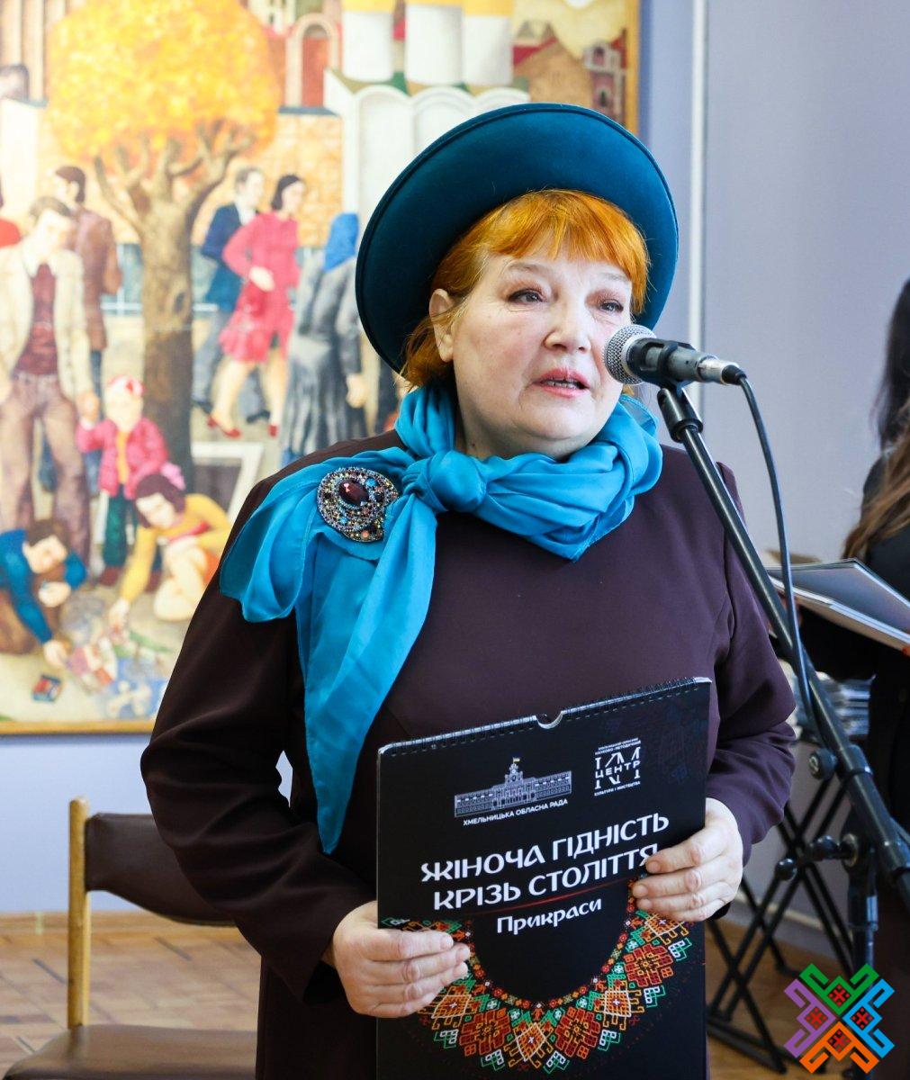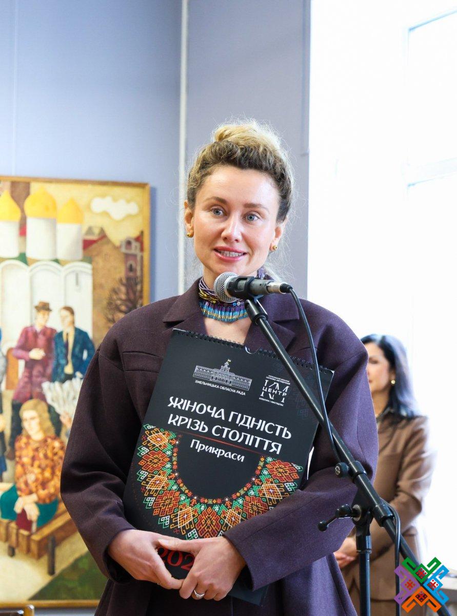 Під час свого виступу голова обласної ради Віолета Лабазюк наголосила, що у рамках «Жіноча гідність крізь століття. Прикраси» вкотре вдалося об’єднати частину потужного жіноцтва нашої прекрасної Хмельниччини. Вона пригадала, що зовсім нещодавно за ініціативи обласної ради відбувся жіночий молитовний сніданок –неймовірний захід, де спілкуючись з матерями, дружинами наших захисників, представницями всіх сфер, їхні очі випромінювали натхнення – робити нашу Хмельниччину і Україну ще кращою.
